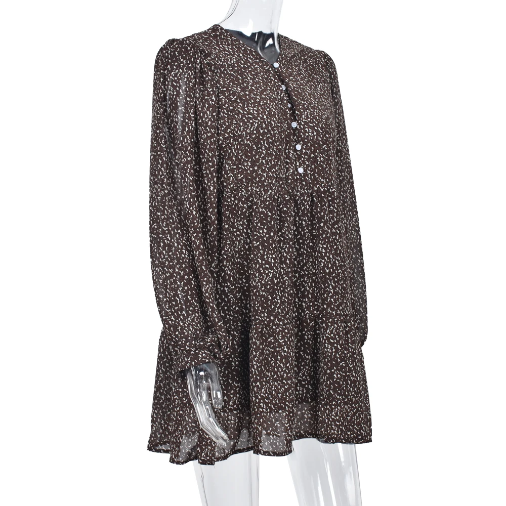 Женское мини-платье с леопардовым принтом, с v-образным вырезом, с рукавами-фонариками, свободное драпированное платье, осень 2021, Новые повседневные платья трапециевидной формы, вечерние платья