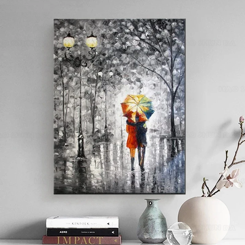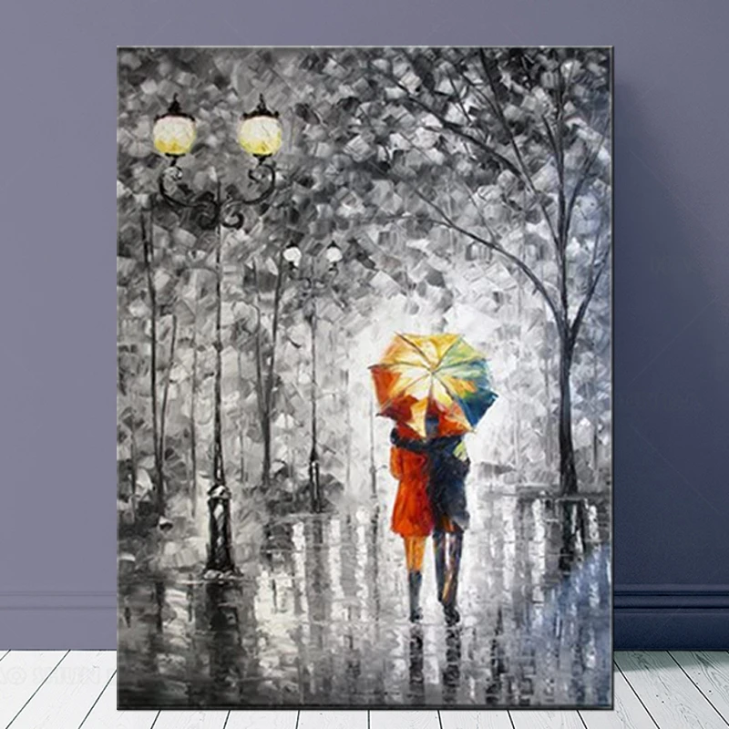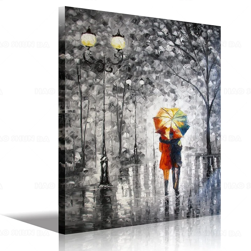 Постер на холсте HD с деревянной рамкой, настенный постер для любителей искусства под зонтом, напечатанный на холсте, картина с ножом, черный, белый, красный, синий