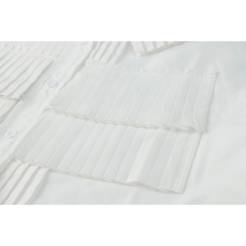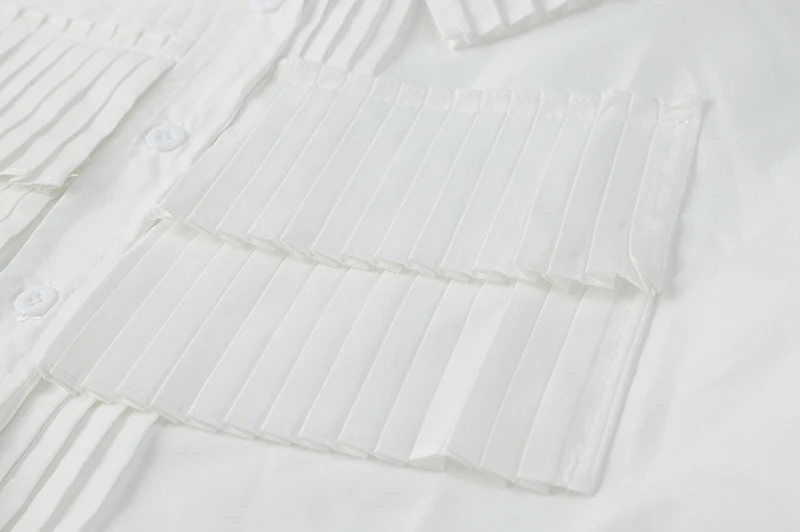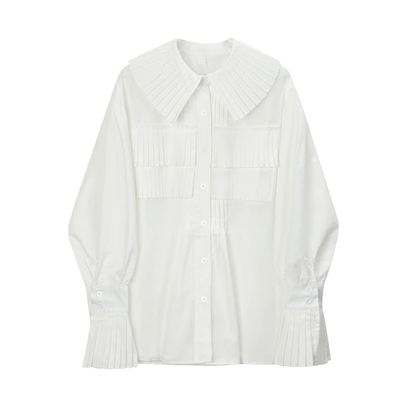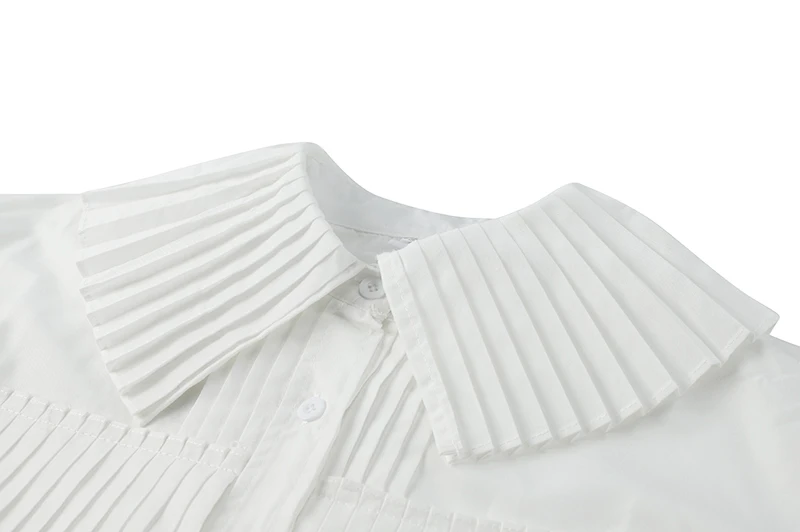 Женская рубашка, Новая Винтажная белая блузка с длинным рукавом, с воротником Питера Пэна, плиссированная, Офисная элегантная, повседневная, 2021