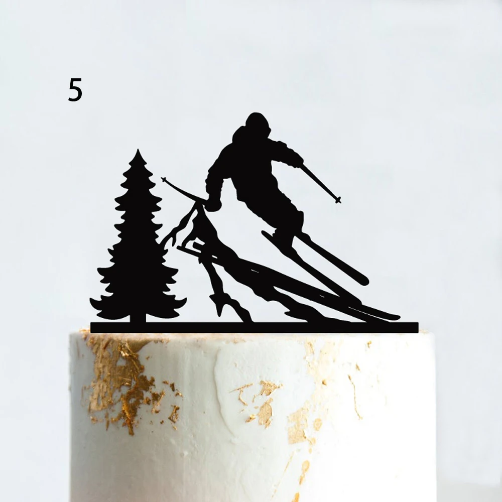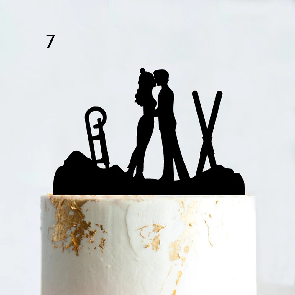 Топпер для катания на лыжах Mr Mrs, для свадебной вечеринки, зимние спортивные поклонники, подъемник для катания на лыжах, украшение для торта на день рождения, силуэт для пары, акриловый, черный