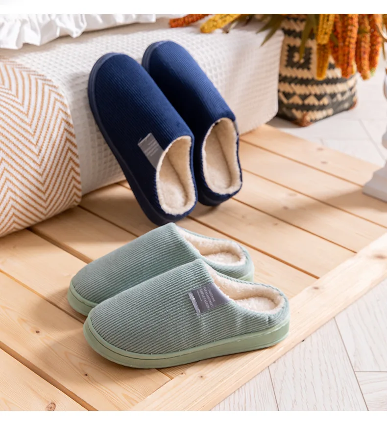Хлопковые вельветовые тапочки для мужчин и женщин, однотонные, Нескользящие, весна-осень, мягкие плюшевые тапки