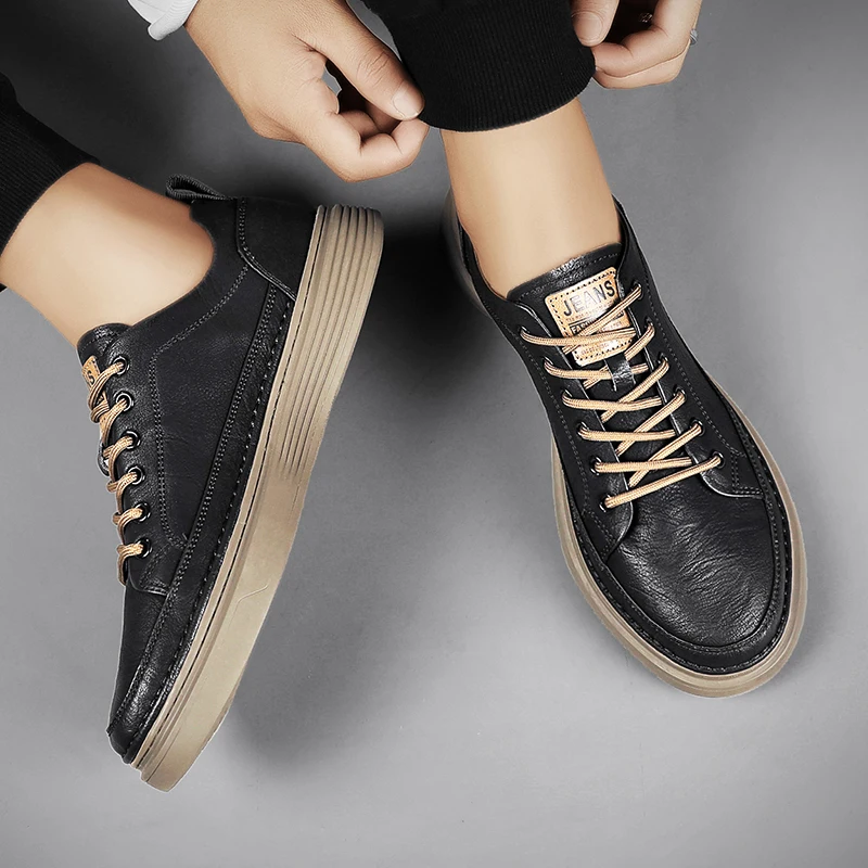 Мужские кожаные кроссовки, черные удобные кроссовки с вулканизированной подошвой, повседневная обувь для ходьбы, 2022