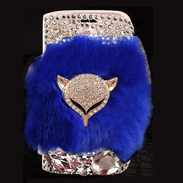Блестящий кожаный флип-кошелек со стразами и лисьим мехом для Iphon...