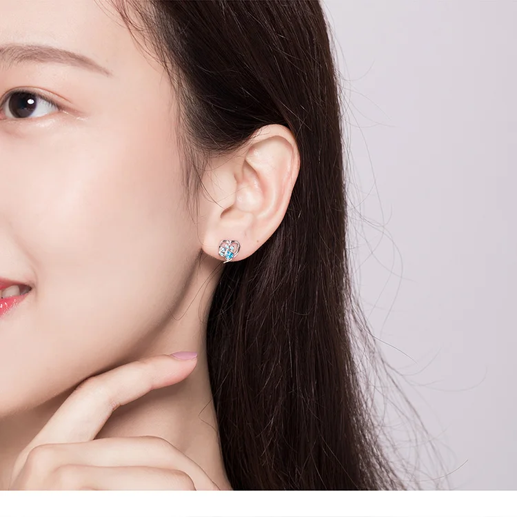 Серьги-гвоздики женские из серебра 925 пробы с фианитами