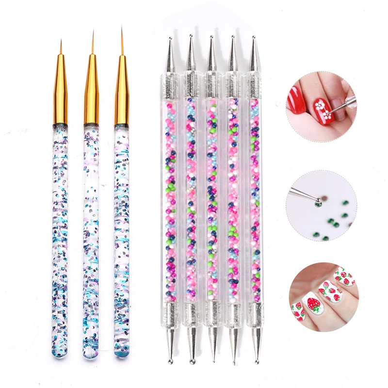 3/5/6/8 шт УФ-гель Рисование Живопись нейл-арта точка нажмите с силой так ручка акриловые французский полоса ногтей кисть для подводки Советы маникюрные инструменты