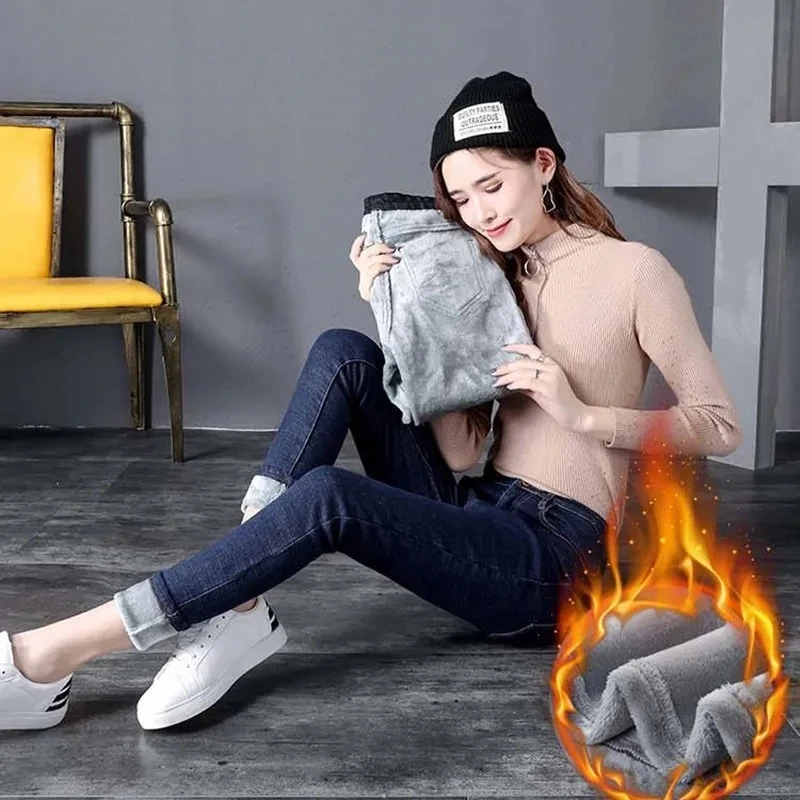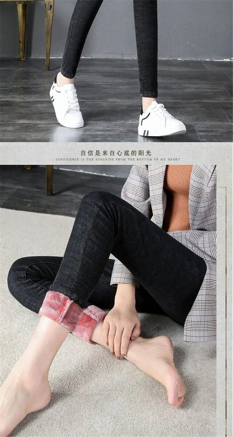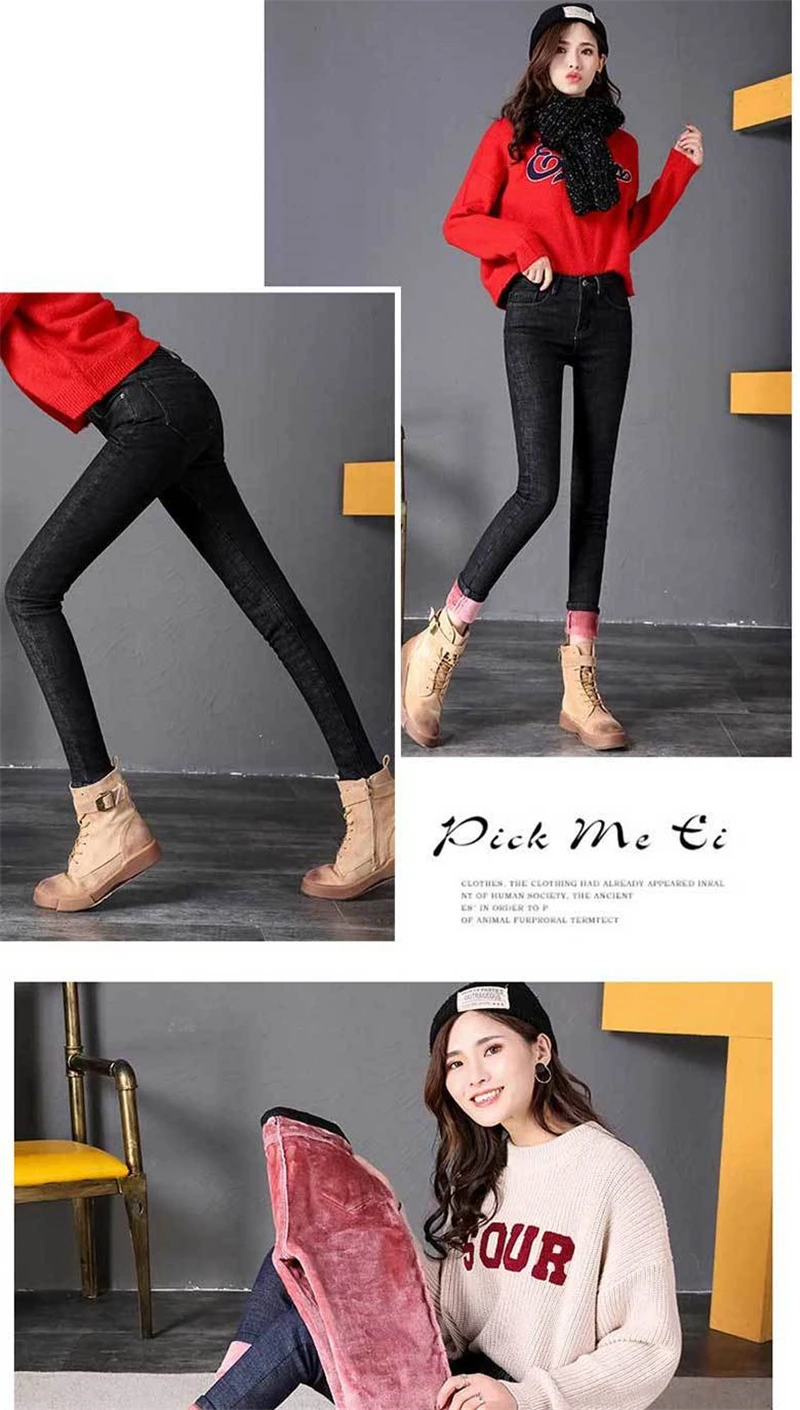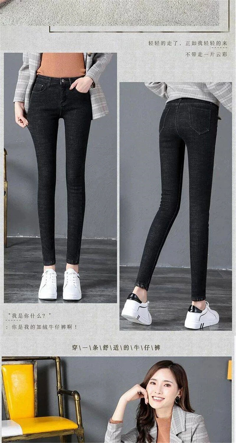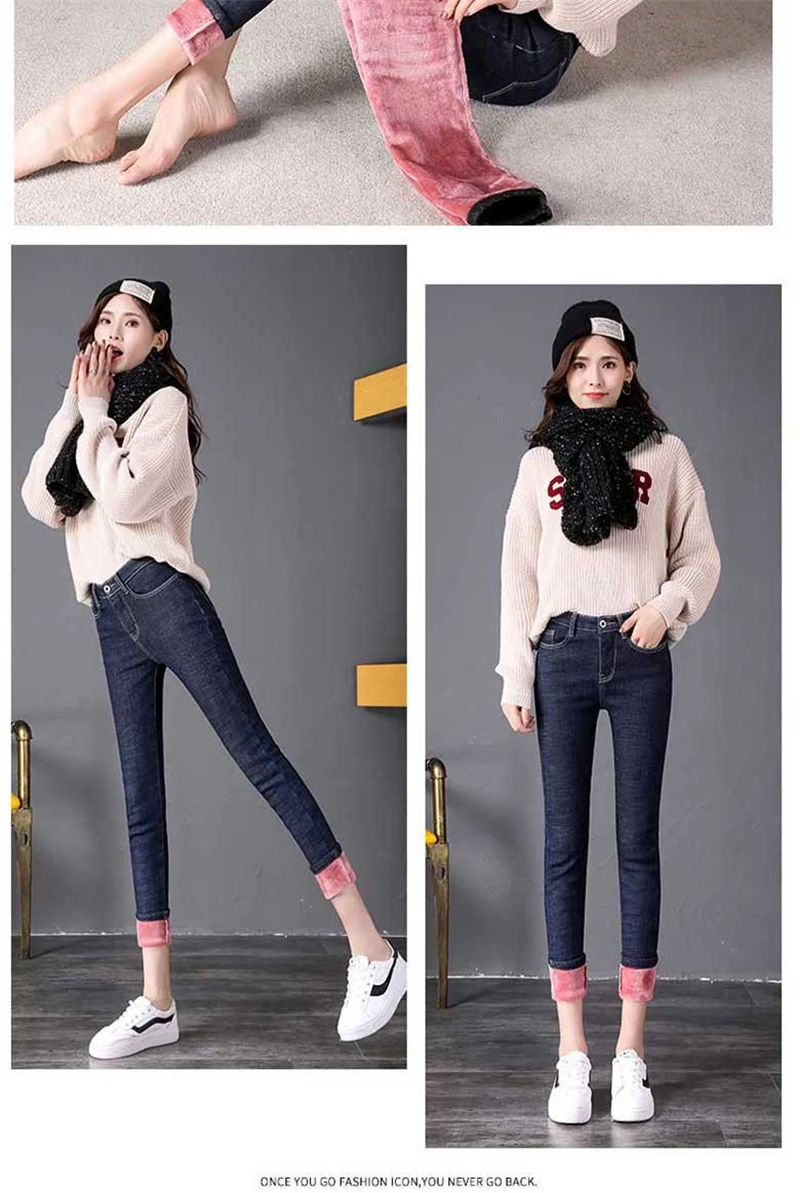 Женские облегающие джинсы с бархатной подкладкой, плотные теплые обтягивающие джинсовые брюки с высокой талией в Корейском стиле, винтажные брюки-карандаш в уличном стиле, для зимы