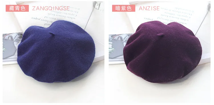 17 цветов осенне-зимняя шапка шерстяные плотные береты французский ...