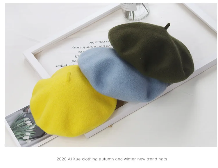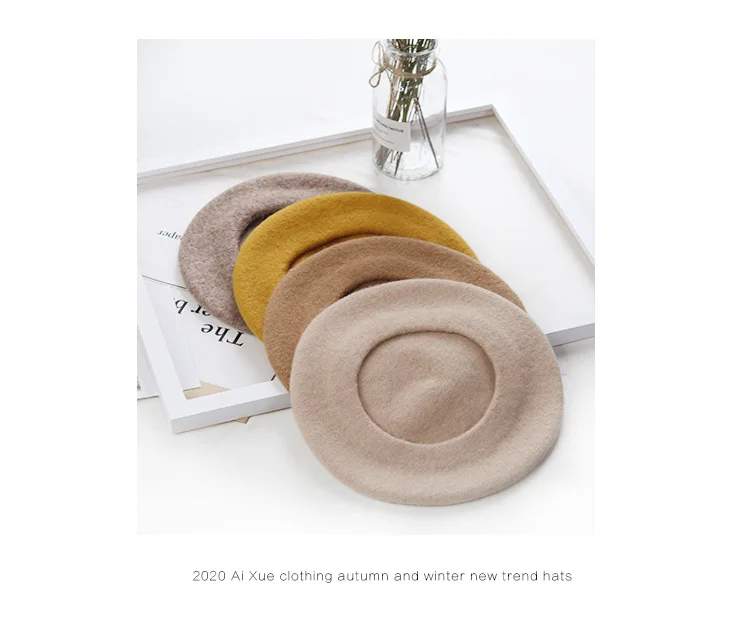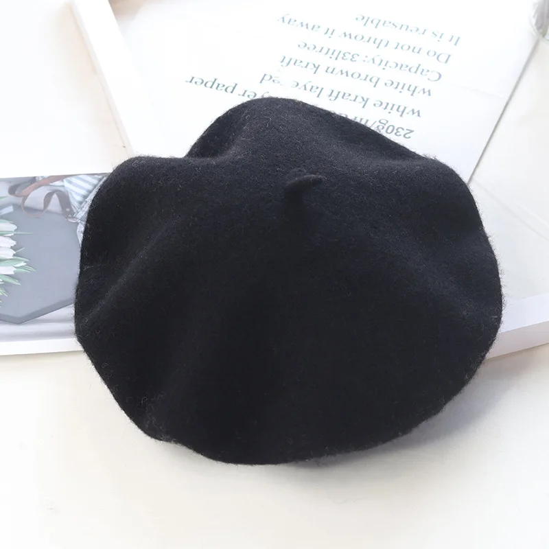 Однотонный винтажный берет, шапки, французские береты, теплая шерст...