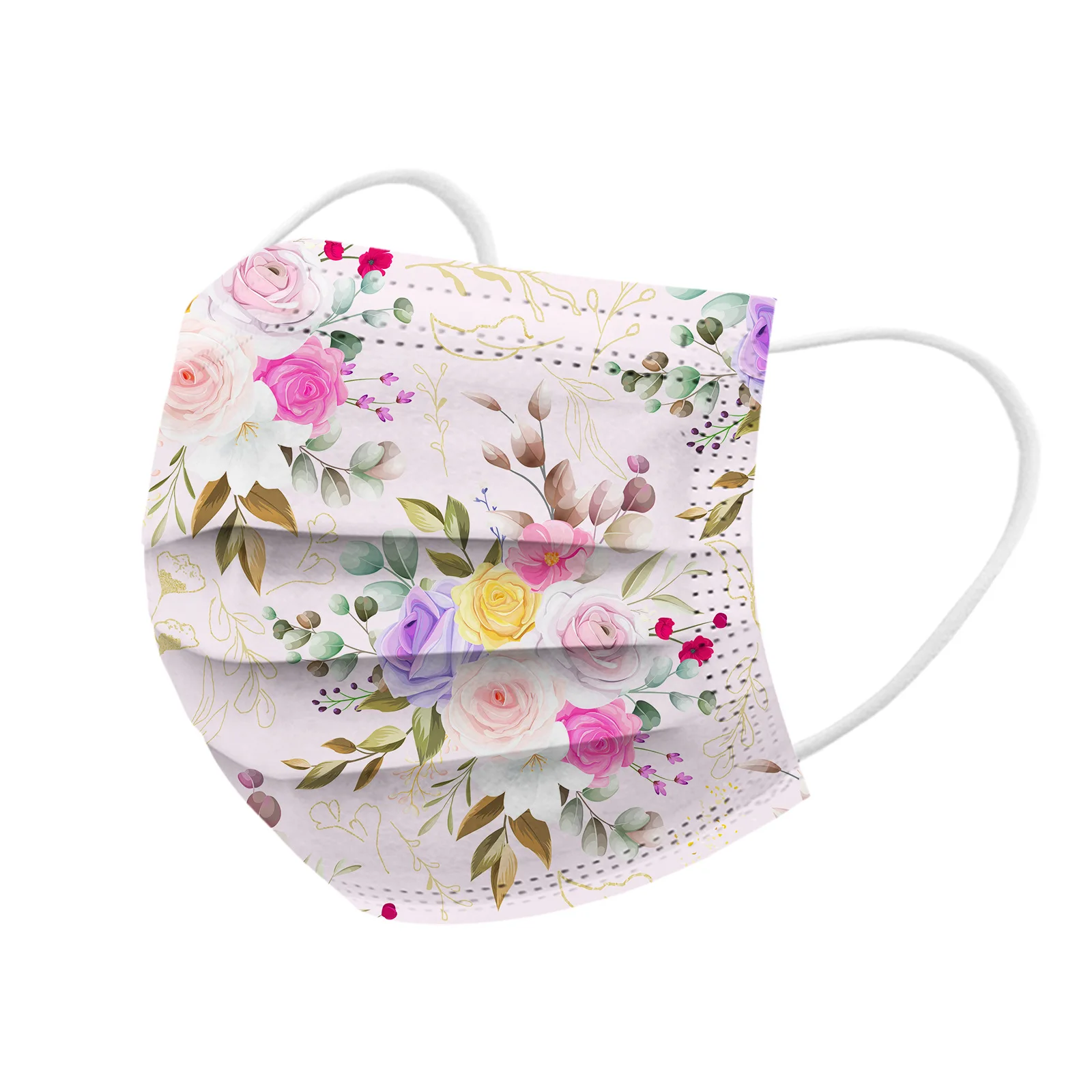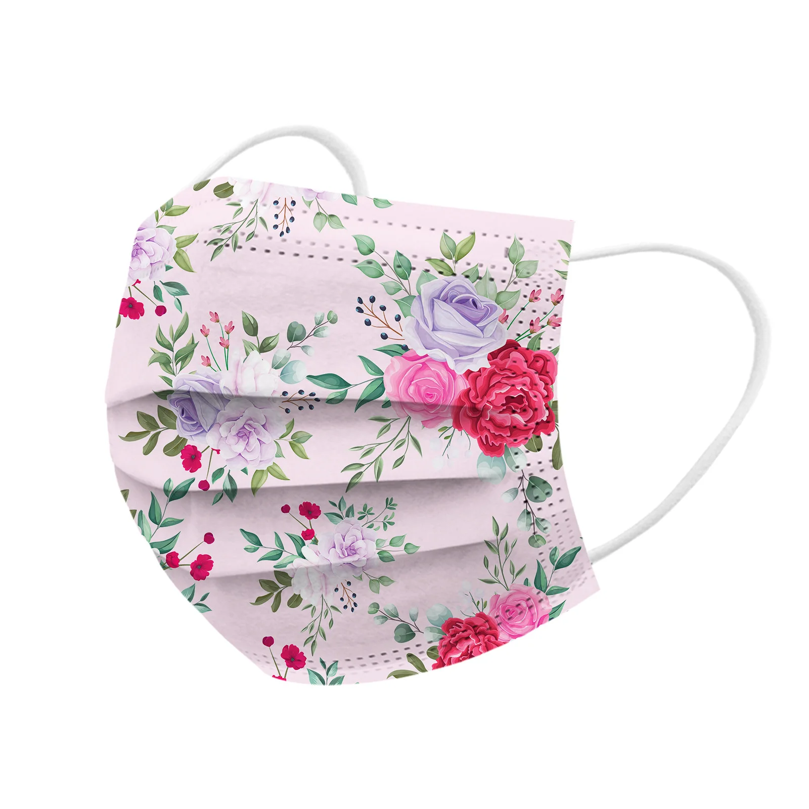 Маски для взрослых с цветочным принтом, одноразовая маска для лица с цветочным узором, трехслойная ткань из мелтблауна