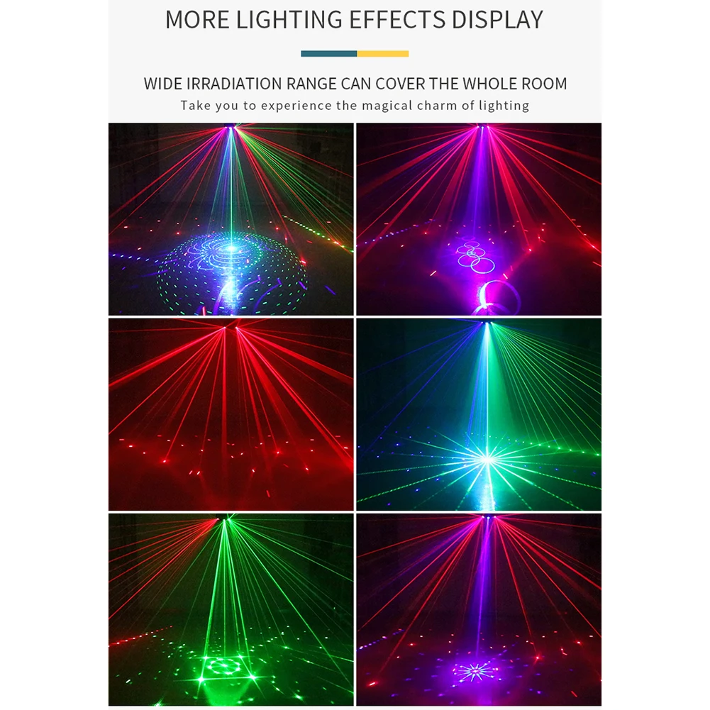 Светодиодный RGB дискотечный лазерный стробосветильник DMX512, 9 гл...