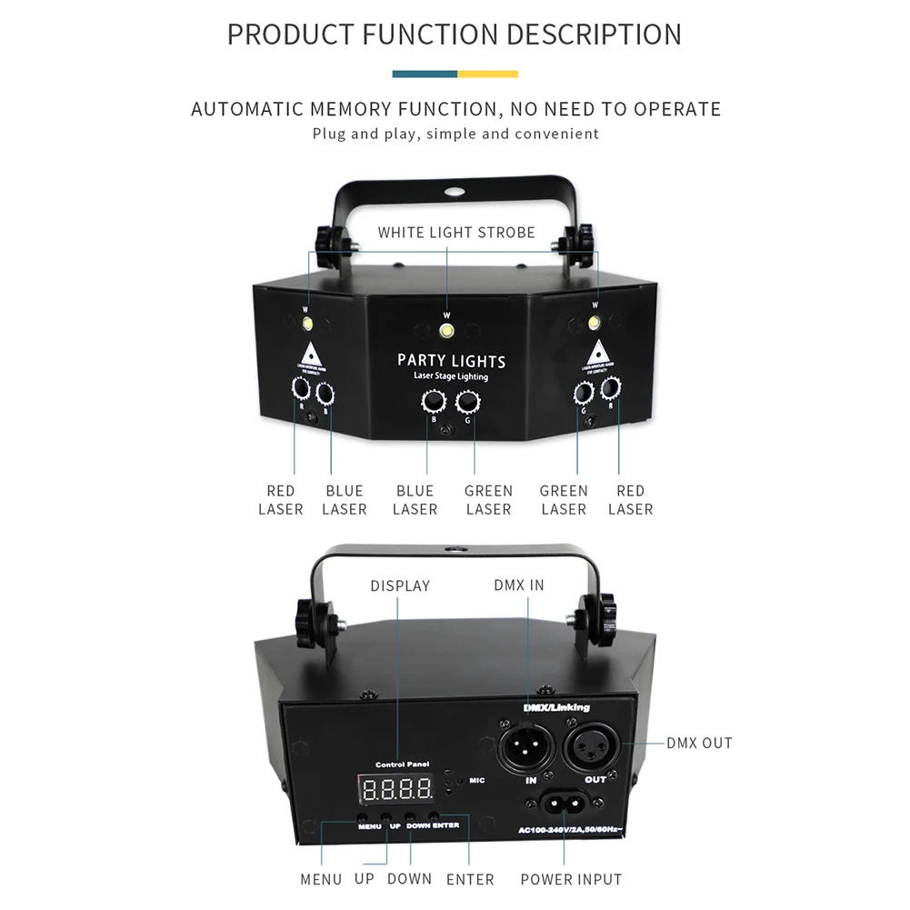 Сценический светодиодный светильник ORY со звуковым управлением, 9 ...