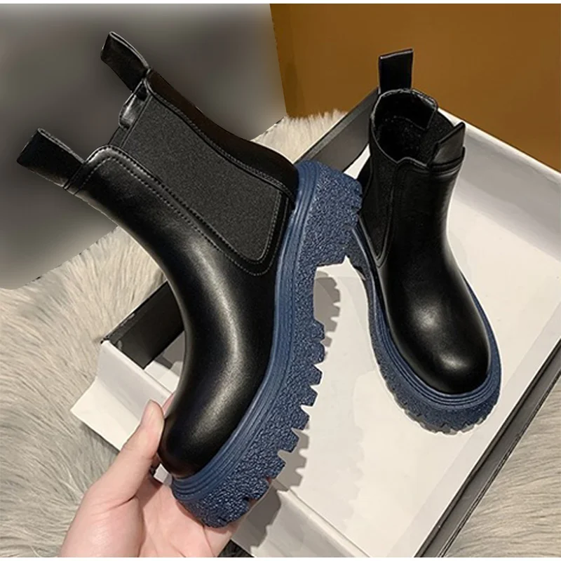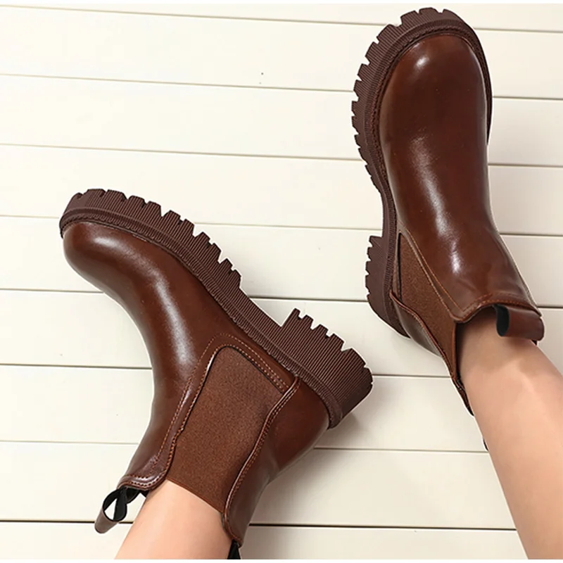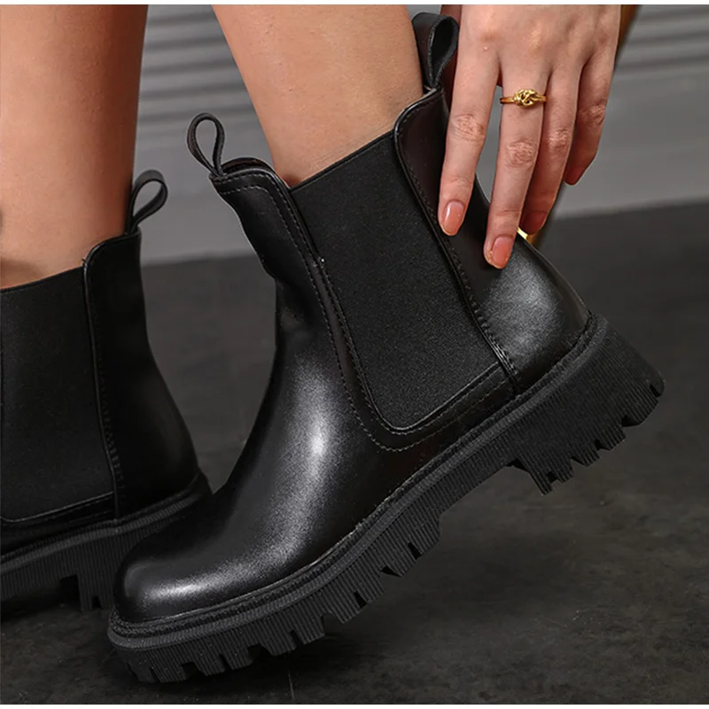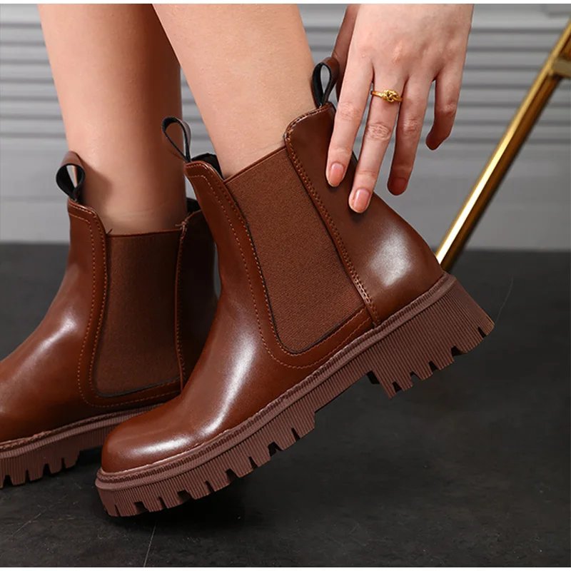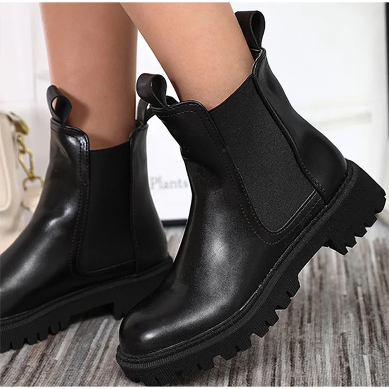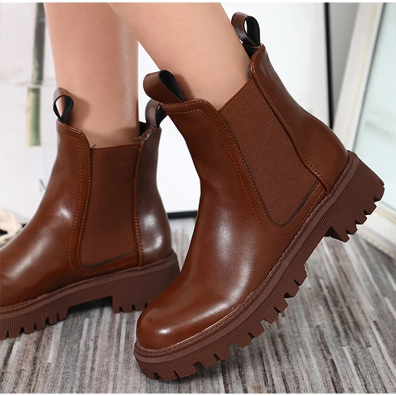 Женские ботильоны из искусственной кожи без застежек, однотонные женские короткие ботинки на толстой подошве, модная женская обувь в стиле ретро, осень 2021