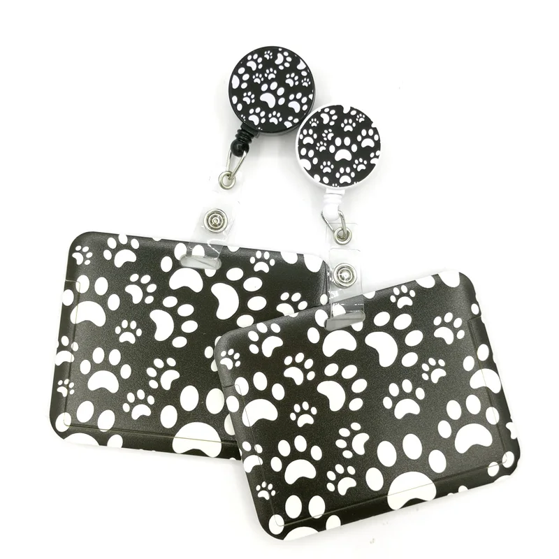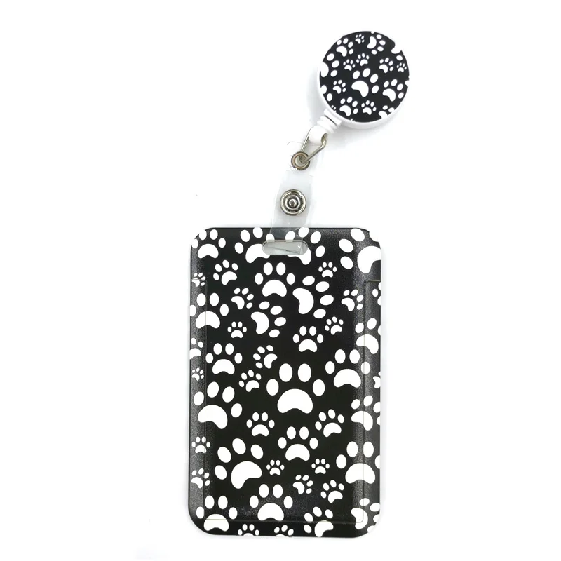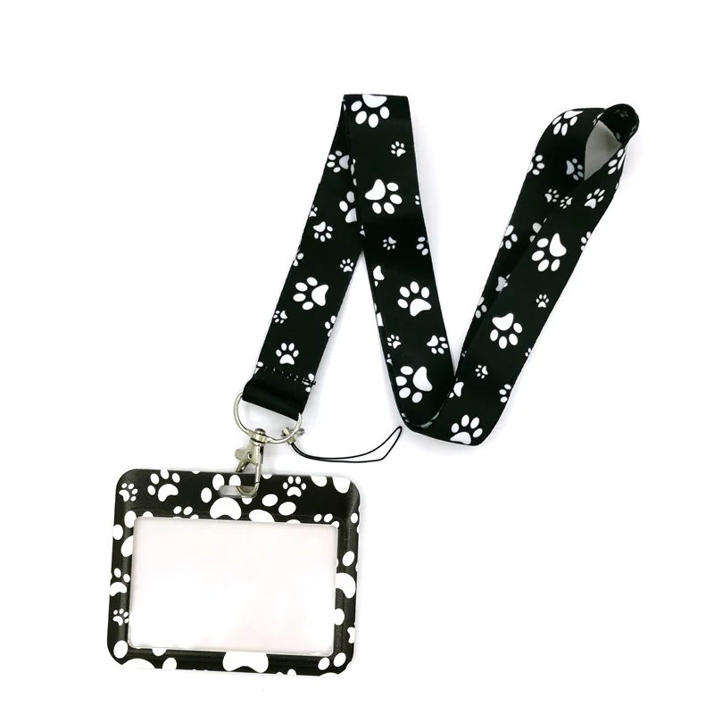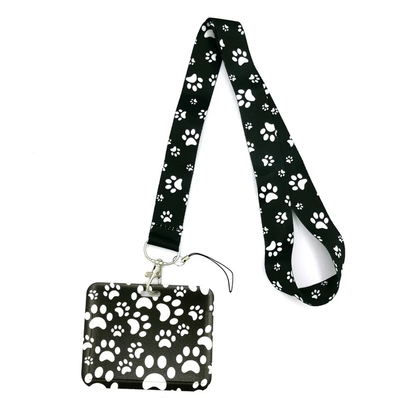 Шнурок с черными собаками и лапками для кредитных карт, держатель для удостоверения личности, сумка для студентов, Женский Дорожный Чехол для карт, Значки для автомобиля