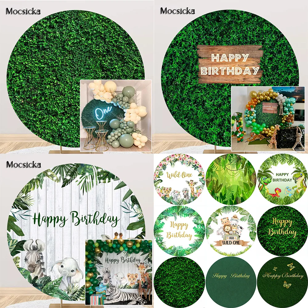 Фон для фотосъемки в джунглях, с изображением торта, круглых зеленых трав и листьев, с изображением леса, для вечеринки в стиле сафари
