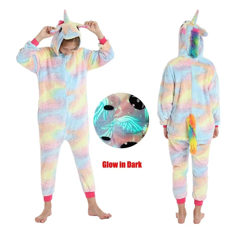 Детские пижамы с единорогом для мальчиков, одежда для сна для маленьких девочек, зимние фланелевые комбинезоны для малышей, Подростковая Пижама, Детский Костюм кигуруми, 2021