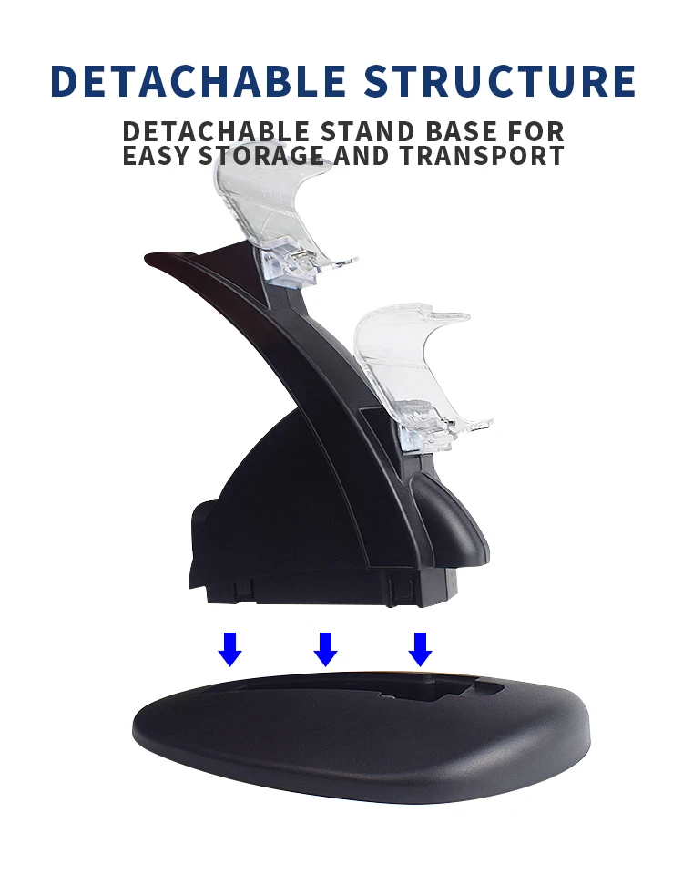 Поддерживает контроллеры вертикально для удобного использования во время зарядки. Полностью время зарядки: Полная зарядка может быть завершена в течение 2,5 часов при зарядке одного контроллера, полная зарядка до двух контроллеров одновременно в течение 4 часов
