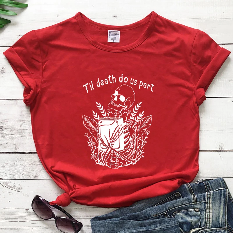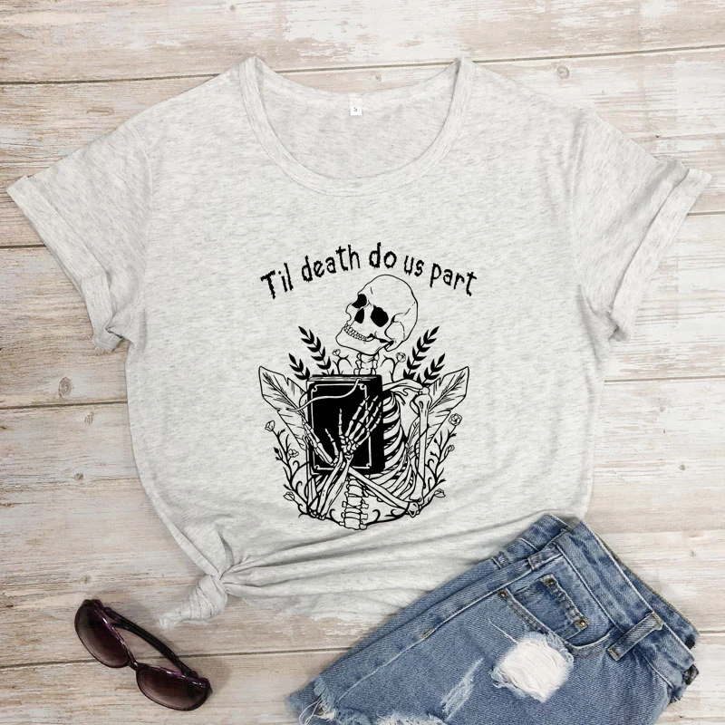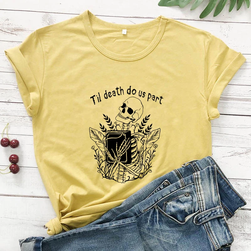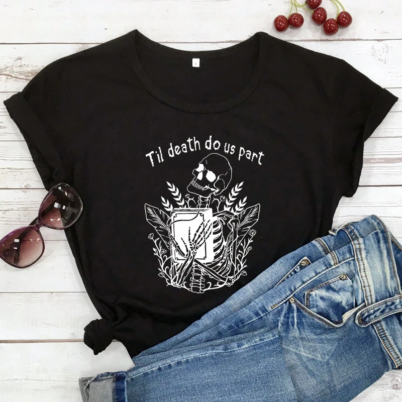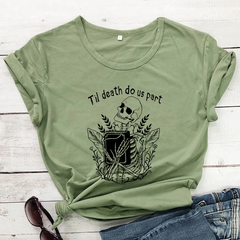 Футболка женская с черепом Til Death Do Us Part, Готическая футболка с тропическим скелетом и книгой, топ в эстетике книги, футболка для чтения книг