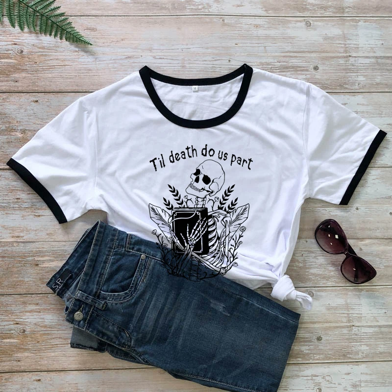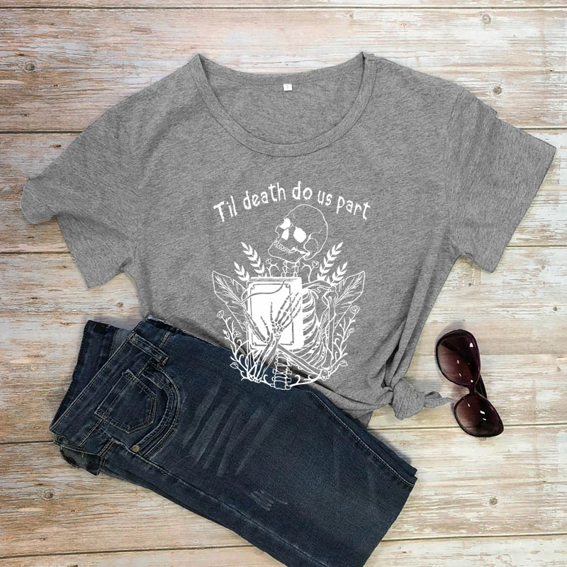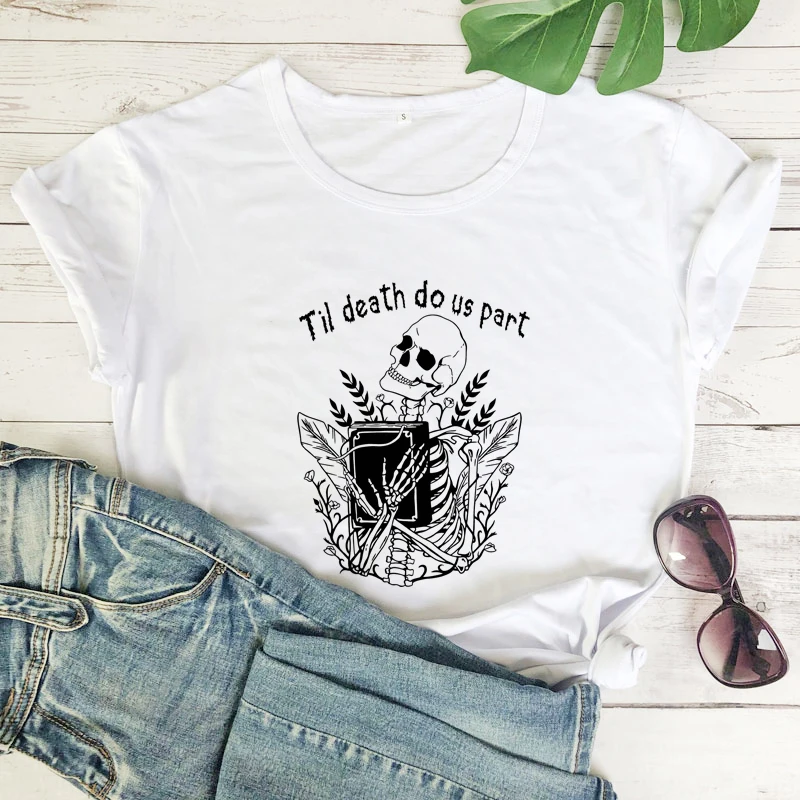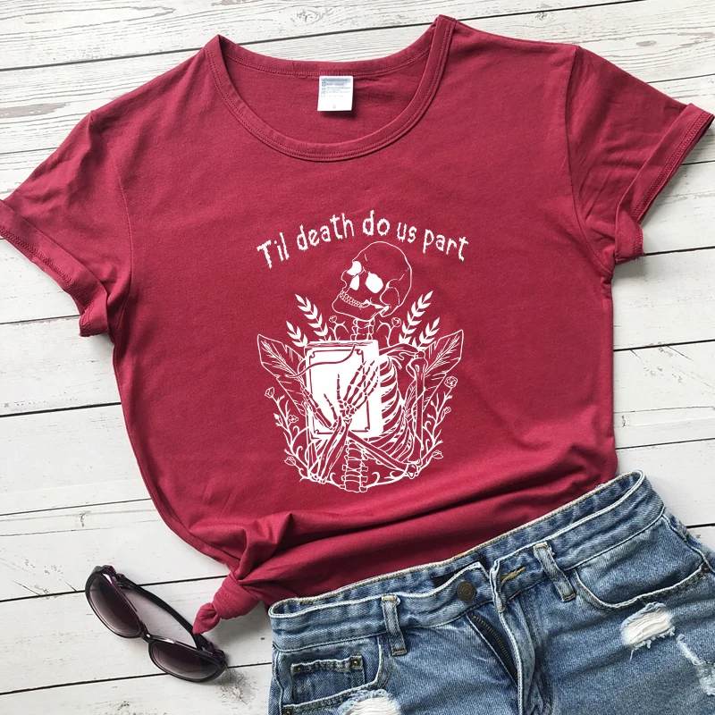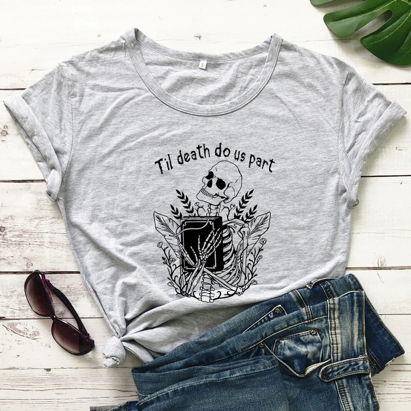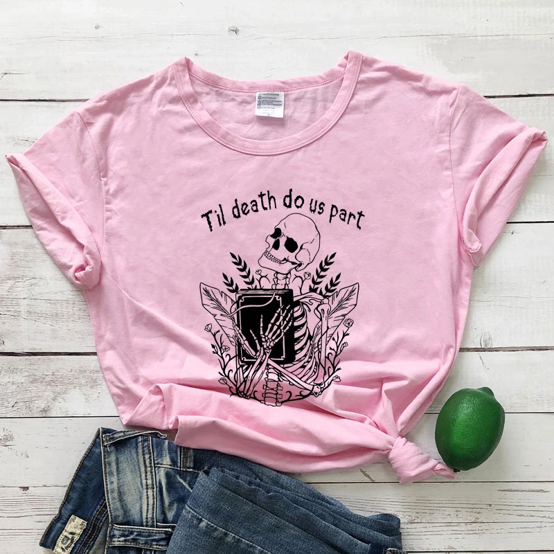 Футболка женская с черепом Til Death Do Us Part, Готическая футболка с тропическим скелетом и книгой, топ в эстетике книги, футболка для чтения книг