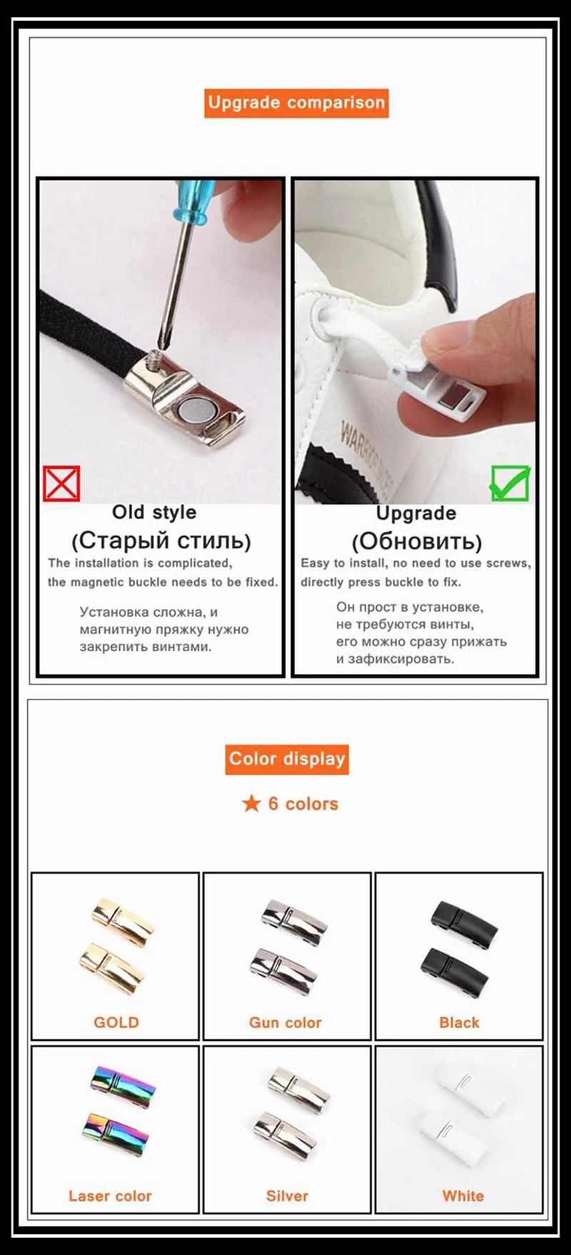 Эластичные шнурки, магнитный металлический замок, простая установка, без галстука, шнурки для обуви, быстро надеваются и снимаются в течение 1 секунды, ленивые шнурки