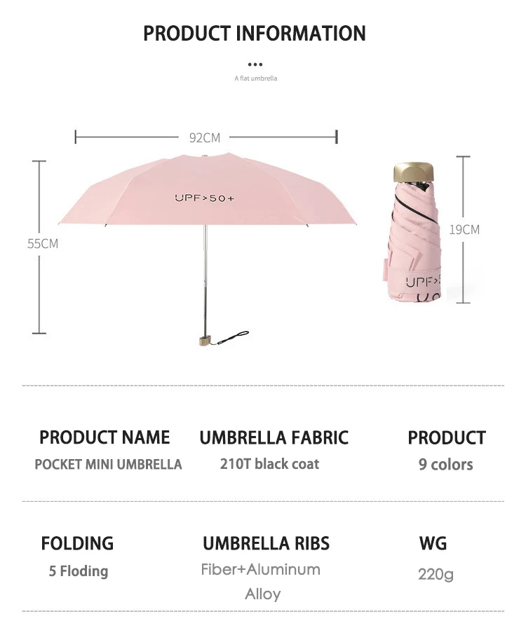 Мини Карманный Женский зонтик от дождя, ультралегкий зонтик, портат...