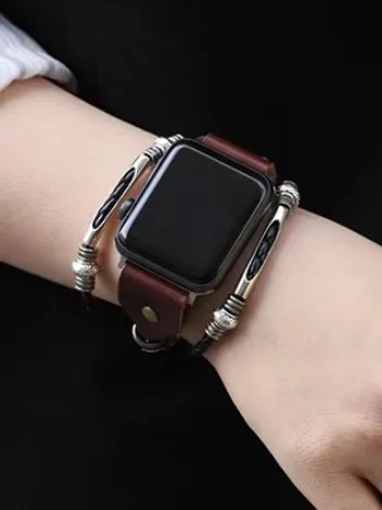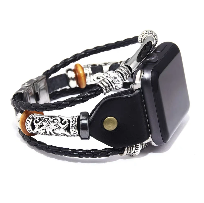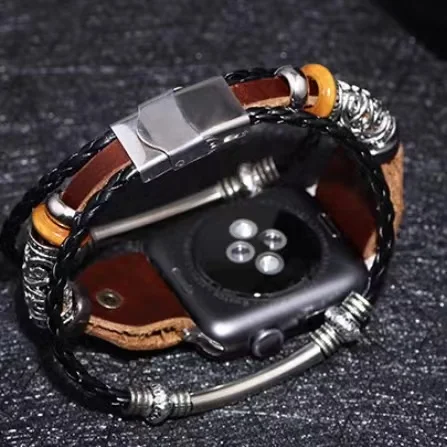 Винтажный кожаный браслет с бусинами Kirykle для Apple Watch серии ...