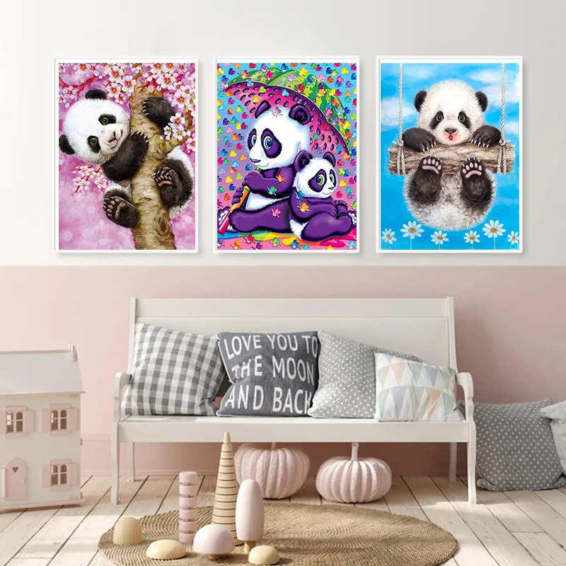 Алмазная живопись, 5D алмазы, сделай сам, панда, вышивка крестиком, полная квадратная, круглая вышивка, красочная ручная работа, домашний декор для стен комнаты