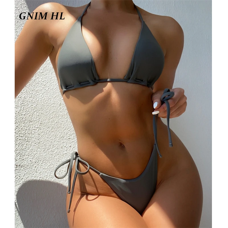 GNIM сексуальный женский купальник с высоким вырезом, лето купальник-бикини треугольной формы, 2021