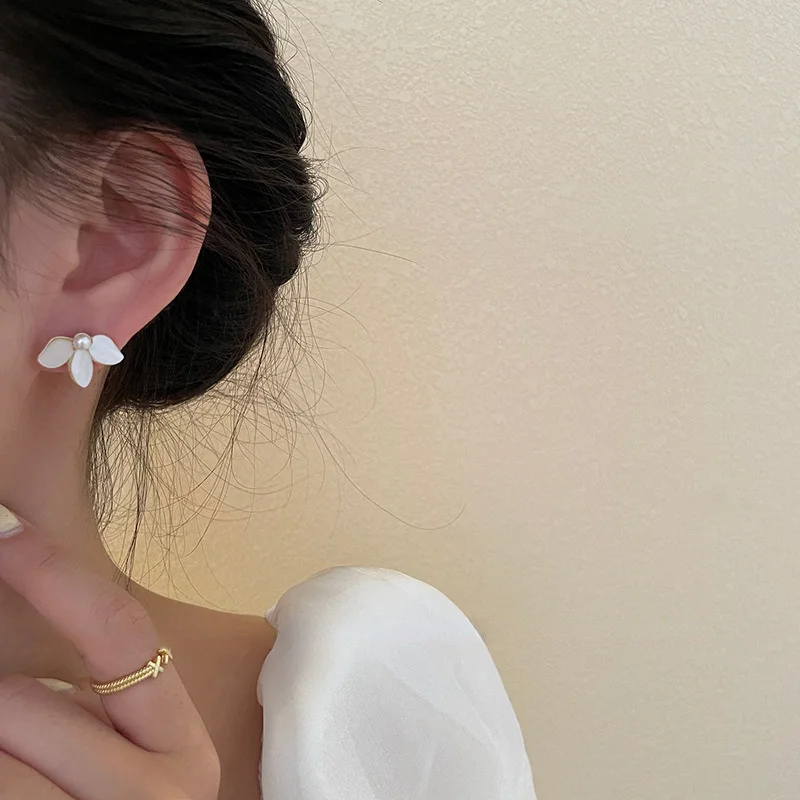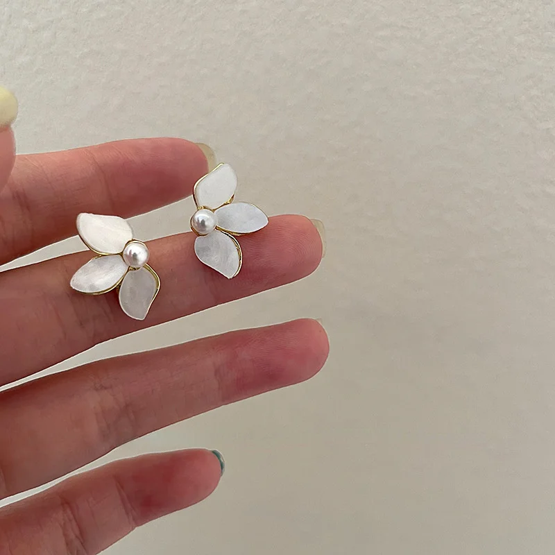 Элегантные акриловые серьги в виде белых ракушек, цветов, женская модель, серебро 925 пробы, Шпилька для ушей, женский подарок