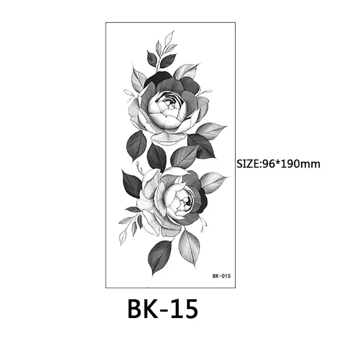 Черные эскизные наклейки для татуировок с цветами, черные 3D наклейки для татуировок, женские водонепроницаемые татуировочные наклейки, украшение для рук, грудины, ног