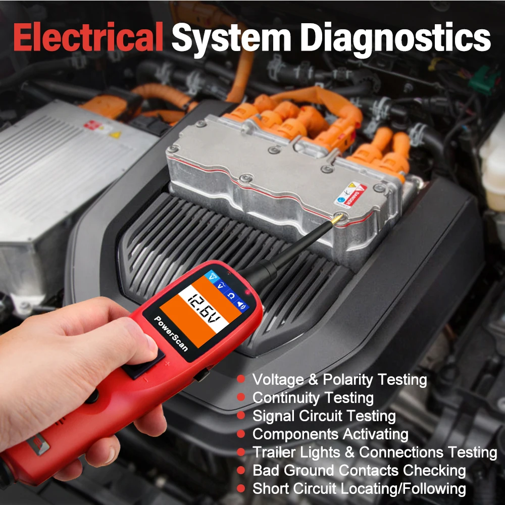 Инструмент PowerScan является самым революционным тестером цепи на сегодняшний день. С AVOmeter, испытательный светильник, встроенный светильник вспышки, индикатор короткого замыкания, реле/тестер компонентов, тестер непрерывности и плохой индикатор заземления, сканирование мощности действительно является конечной мощностью и доступностью, позволяет пользователям проверять схемы за один шаг. Абсолютно необходимо, чтобы каждый техник искал быстрое и точное решение для диагностики электрической системы.