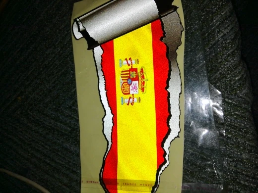 Виниловая Светоотражающая наклейка с разорванным металлическим флагом Испании и страны, 18 Х9 см, 1 шт.