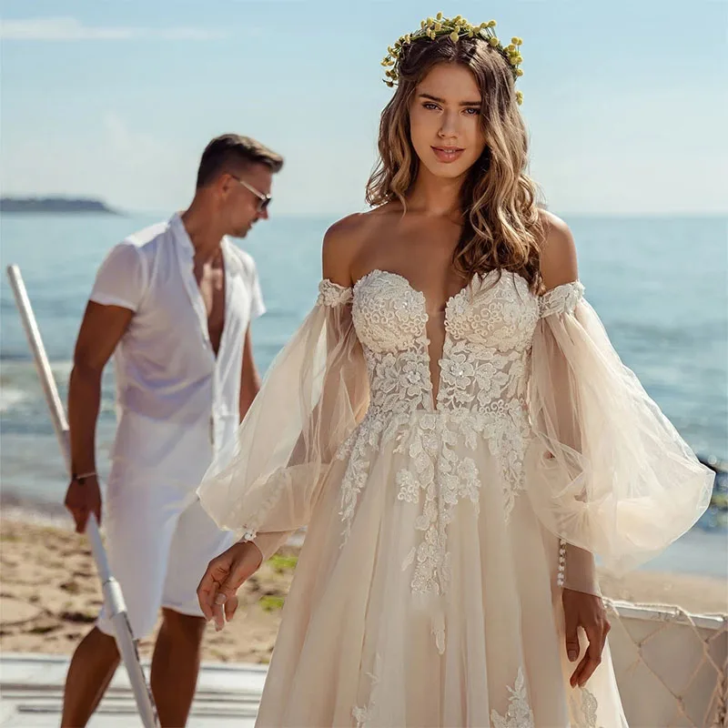 Vestidos Boho Свадебные платья с длинным рукавом A... US $690,31