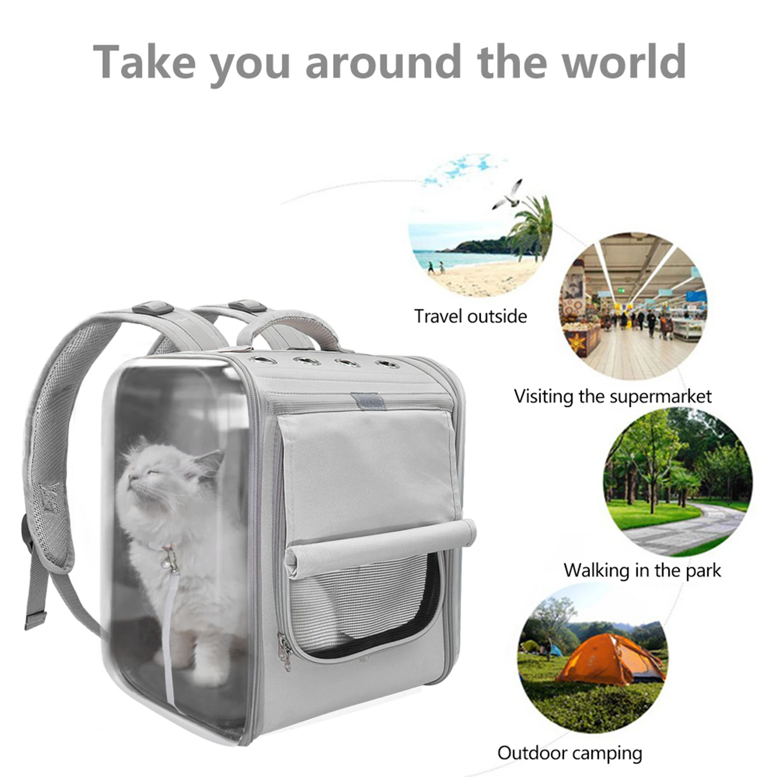 Модный космический капсульный стиль и инновационный прозрачный дизайн окон, который поможет облегчить беспокойство вашего милого щенка и кошки, позволит им наслаждаться солнечным светом и природой.Экологически чистая прочная Передняя сетка из ПВХ обеспечивает комфортную и воздухопроницаемую среду для ваших близких друзей. Подайте как можно больше воздуха, чтобы избежать намокания.Портативный и простой в хранении. Верхняя ручка облегчает переноску любимого питомца. Рюкзак складывается для хранения.Регулируемые удобные мягкие лямки для спины и плеч облегчают давление шейного отдела позвоночника и поясничного отдела позвоночника.Отлично подходит для переноски кошек, маленьких собак, кроликов и других мелких животных. Идеально подходит для семейного отдыха, кемпинга, прогулок, пеших прогулок, езды на велосипеде, шоппинга, поездки к ветеринару и поездки на автобусе или самолете.