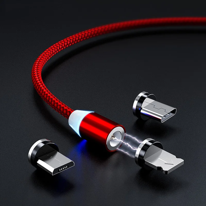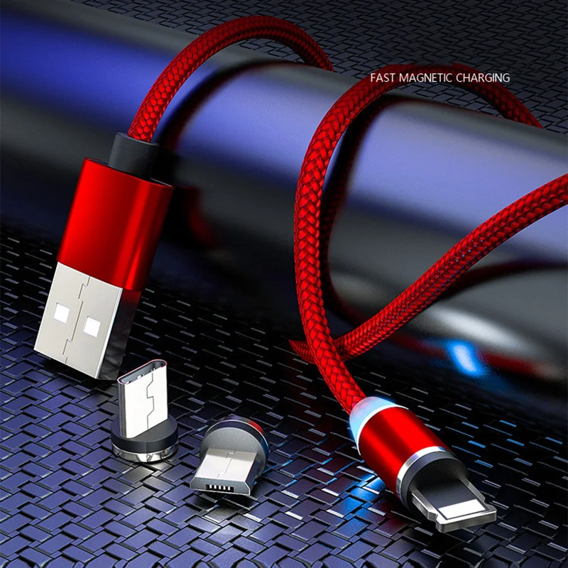 Магнитный зарядный кабель Micro USBType-C, 1 м, со светодиодной под...