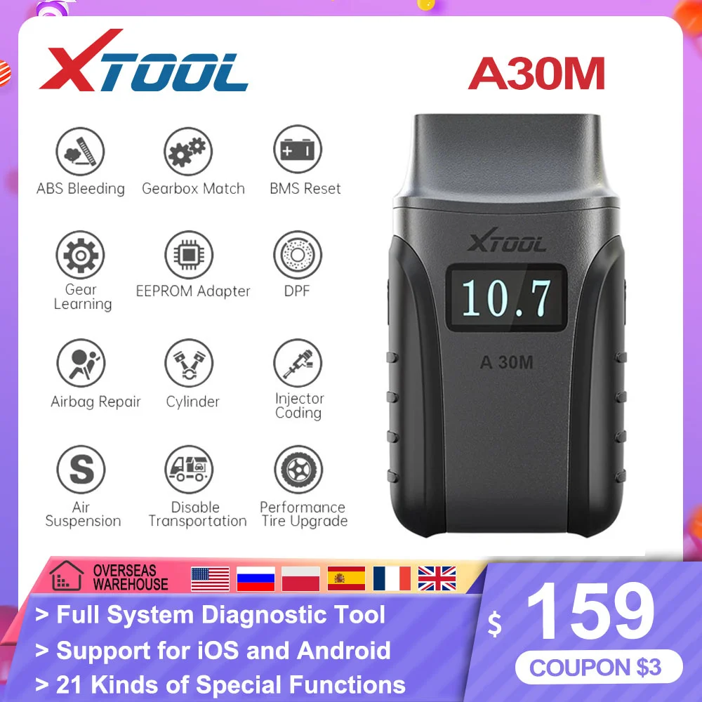 XTOOL A30M OBD2 авто диагностические инструменты с AndriodsIOS код автомобиля считывает полные системы диагностики мульти транспортных средств бесплатное обновление
