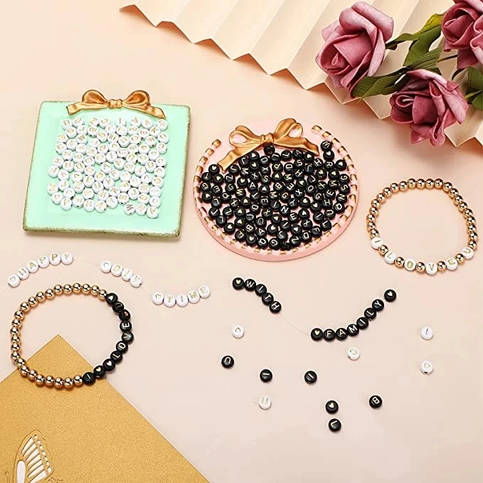 BEAUCHAMP Смешанные Буквы акриловые бусины орнамент круглая кубик алфавита разделитель Ювелирные изделия Подвески черный белый золотой серебряный цвет Сделай Сам