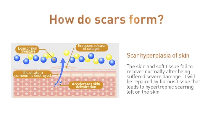 Нежная и тщательная выцветание шрамов1. Различные гиперпластиковые шрамыМожет разбавлять и восстанавливать гиперпластические шрамы, вызванные ожогами, травмами, операцией, беременностью и т. д.Гиперпластиковые шрамы вездеВключая лицо, шею, суставы, конечности, мохнатые области, не нужно брить волосыПодходит для чувствительной кожиДобавить антиаллергические ингредиенты, не легко быть аллергическим, подходит для чувствительной кожи