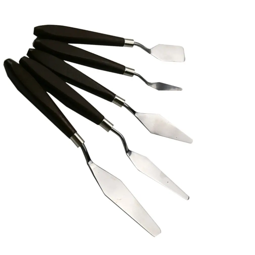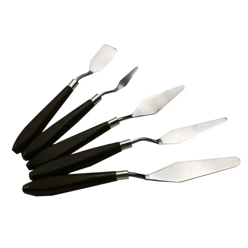 Скребок для масляной краски, 5 шт., набор с деревянной ручкой, нержавеющая сталь, инструмент для рисования, палитра, нож, лопата, инструменты для рисования