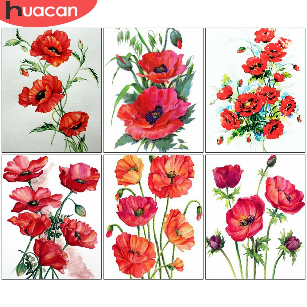 HUACAN Раскраска по номерам Poppy цветочные наборы DIY Ручная роспись по номерам рисунок на холсте украшение для дома для взрослых
