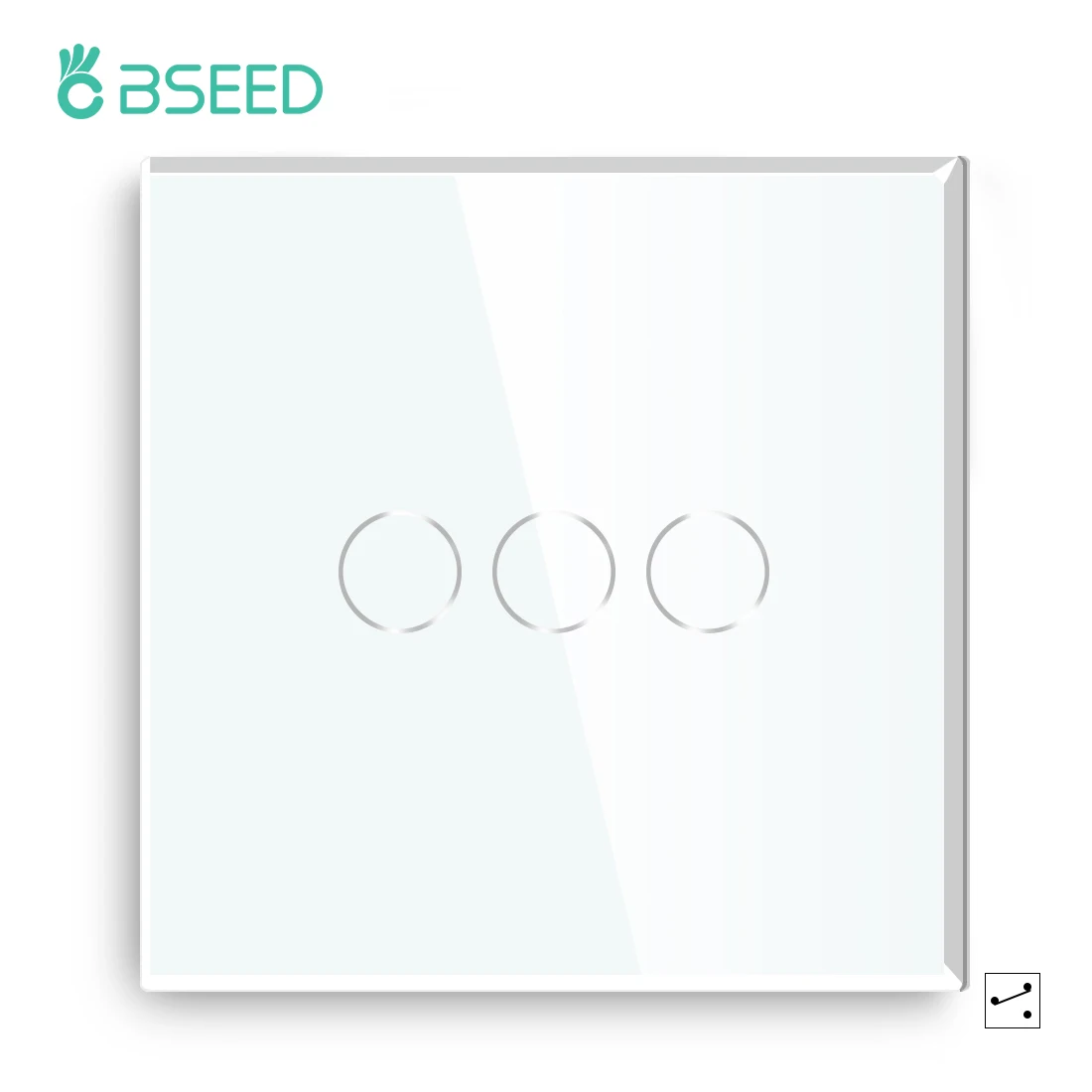 Bseed 3 Gang 2 Way сенсорный выключатель, европейский стандарт, сенсорный выключатель, черный, белый, золотой, 3 цвета, со стеклянным кристаллом 2000 Вт