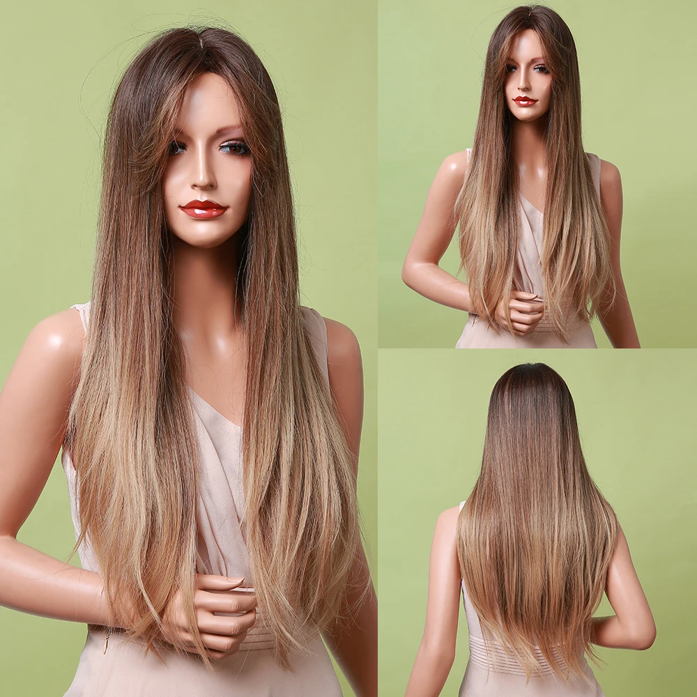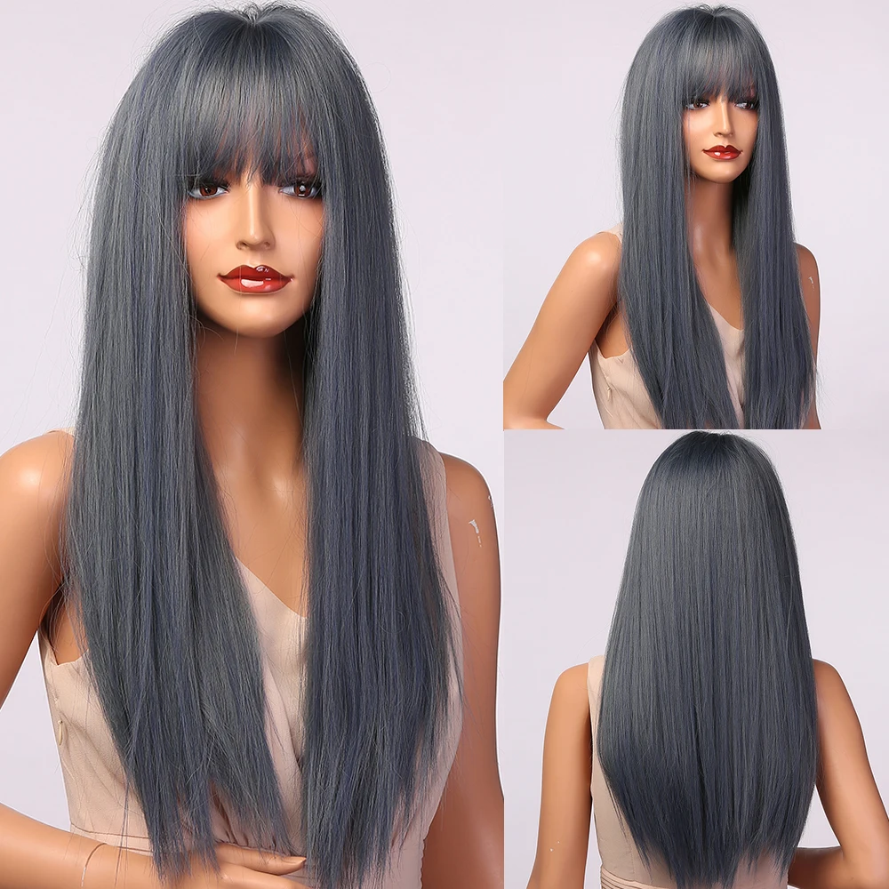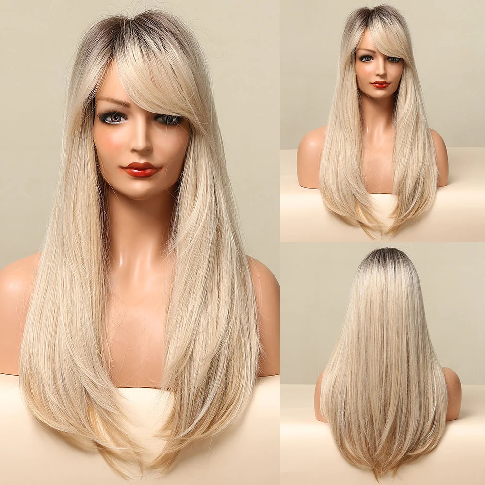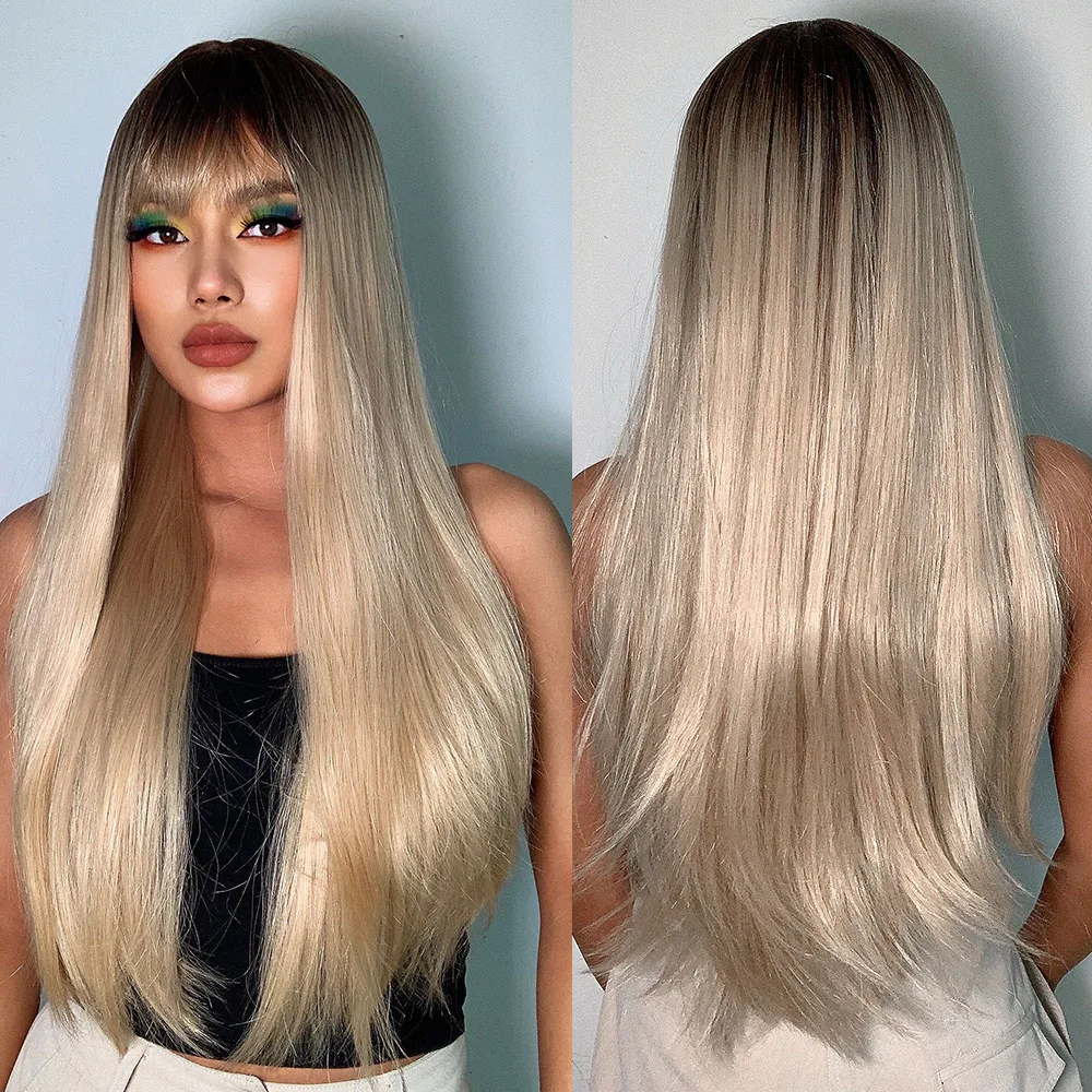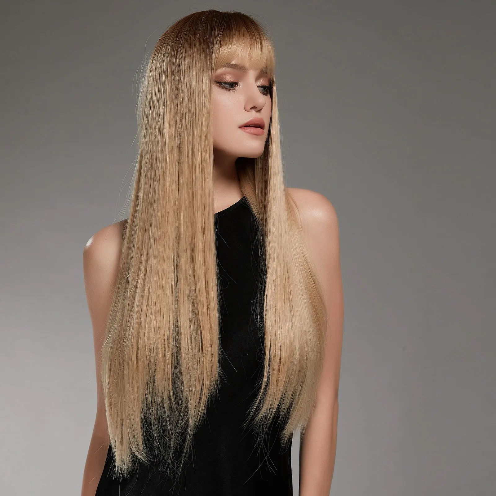 Женский синтетический парик с челкой henmargu, черный, коричневый, золотистый парик для косплея с длинными прямыми волосами из термостойкого волокна