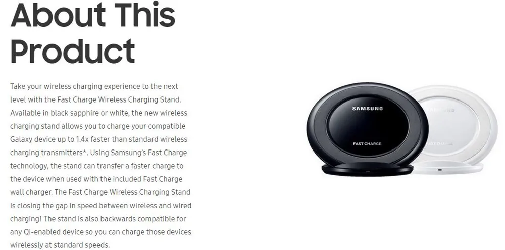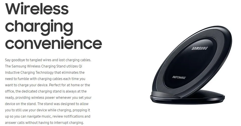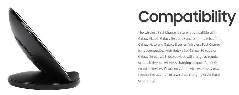 Особенности:1. Оригинальный Samsung S7 Настольный беспроводной стенд зарядное устройство2. Быстрая зарядка 15 Вт, складная конструкция 3. Выход: 5 В/2 а 9 В/1,67 А4. Поддержка QC3.0/Samsung AFC протокол быстрой зарядки5. С быстрым кабелем6. В Оригинальной Коробке Примечание: настенное зарядное устройство в комплект не входит!Обратите внимание, что если у вашего телефона нет беспроводной зарядки, вам нужно купить беспроводной зарядный приемник, прежде чем вы сможете его использовать