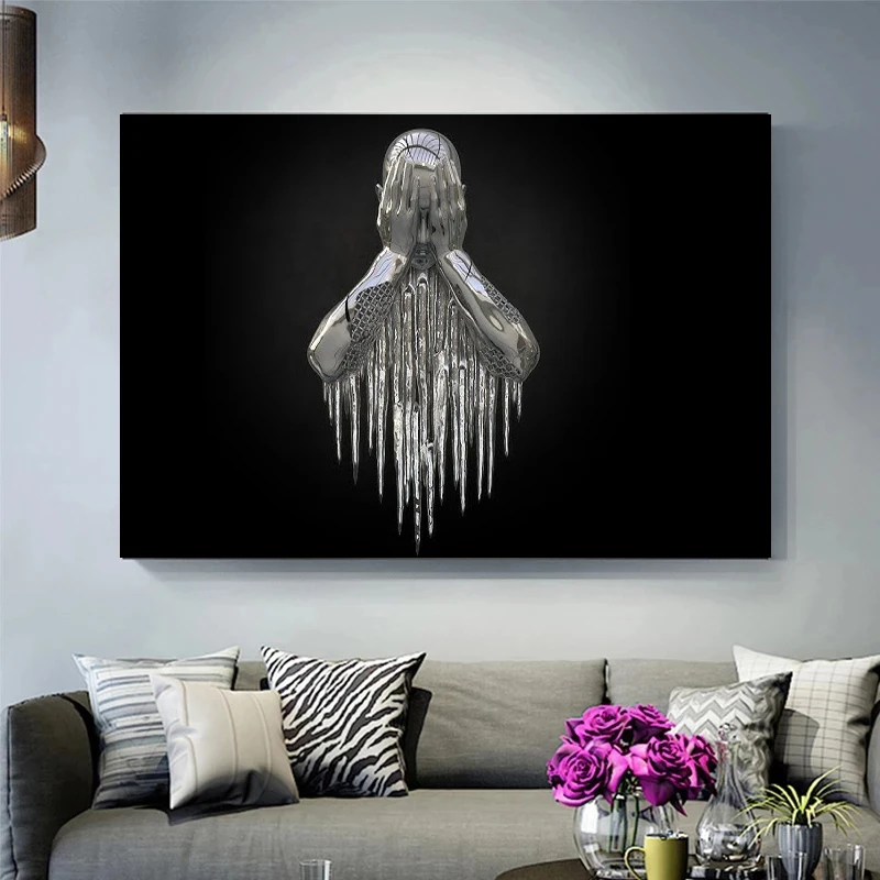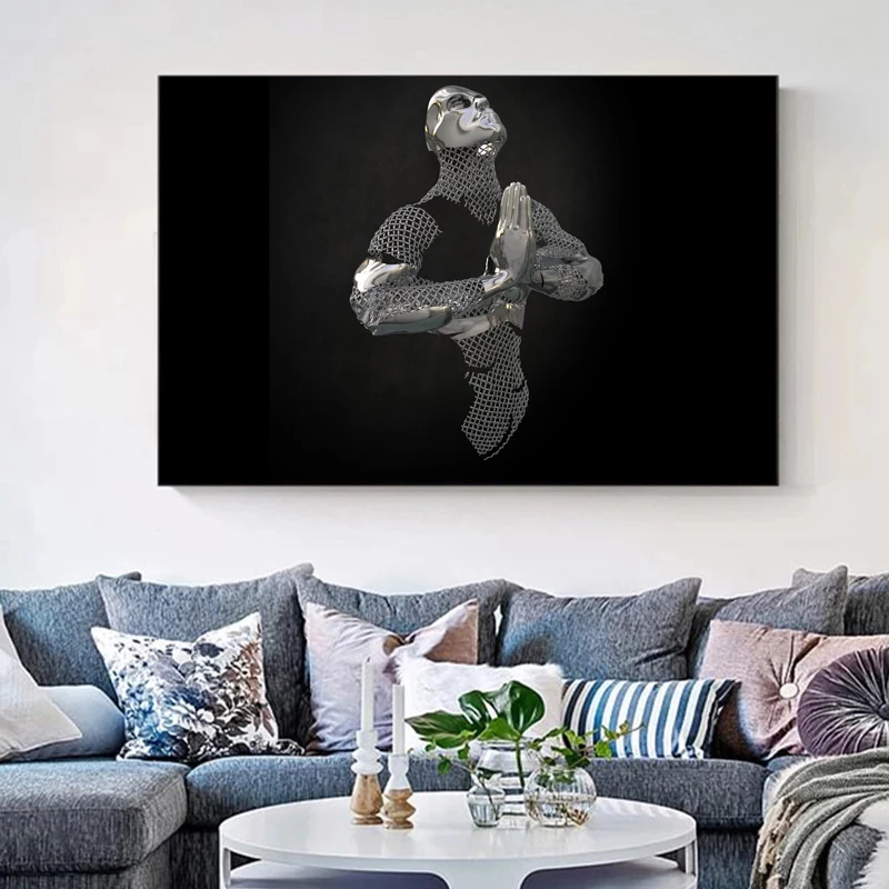 Абстрактное искусство, металлическая статуя, молитвенная Картина на холсте, настенные художественные плакаты, печатные настенные картины для гостиной, домашний декор