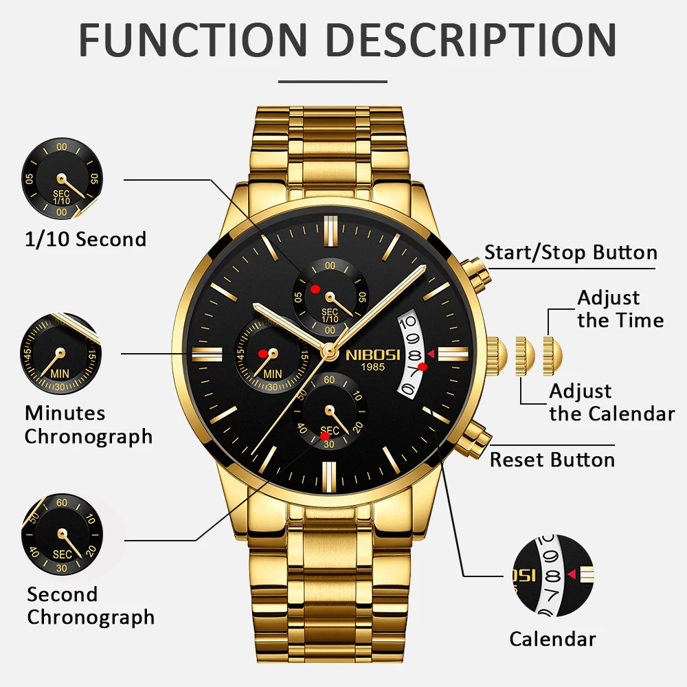 Мужские водонепроницаемые кварцевые часы NIBOSI, с секундомером, дл...