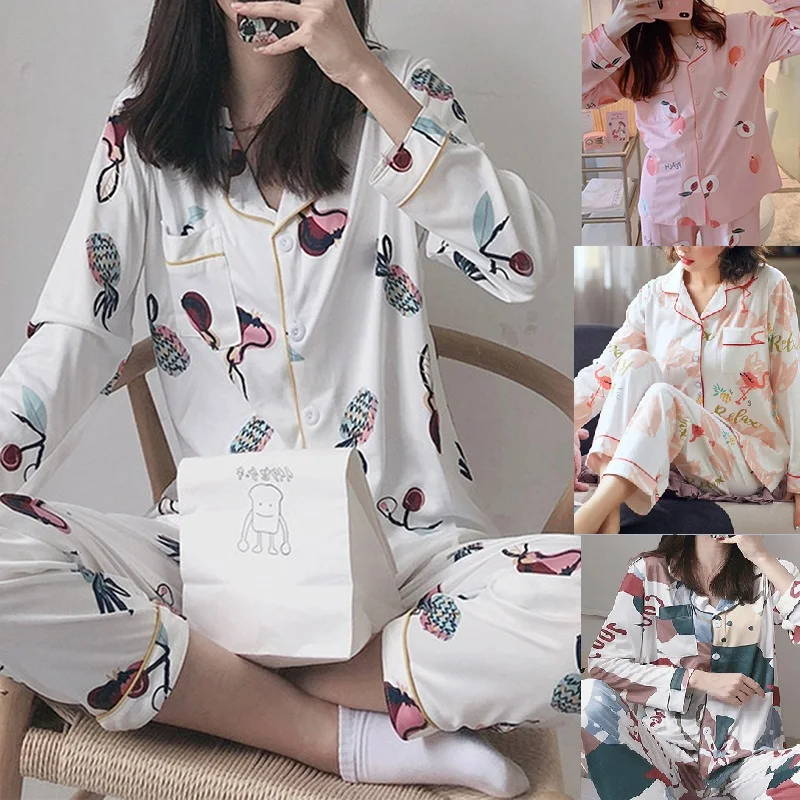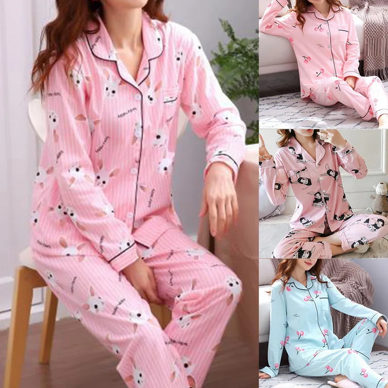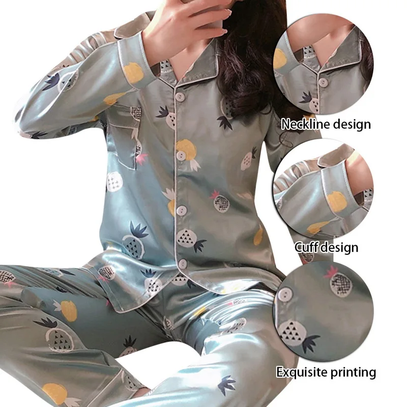 Шелковая пижама для женщин, атласная пижама с длинным рукавом, повседневная одежда для сна, ночная рубашка, удобная домашняя одежда с животными, атласная пижама