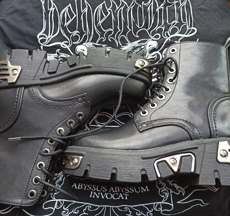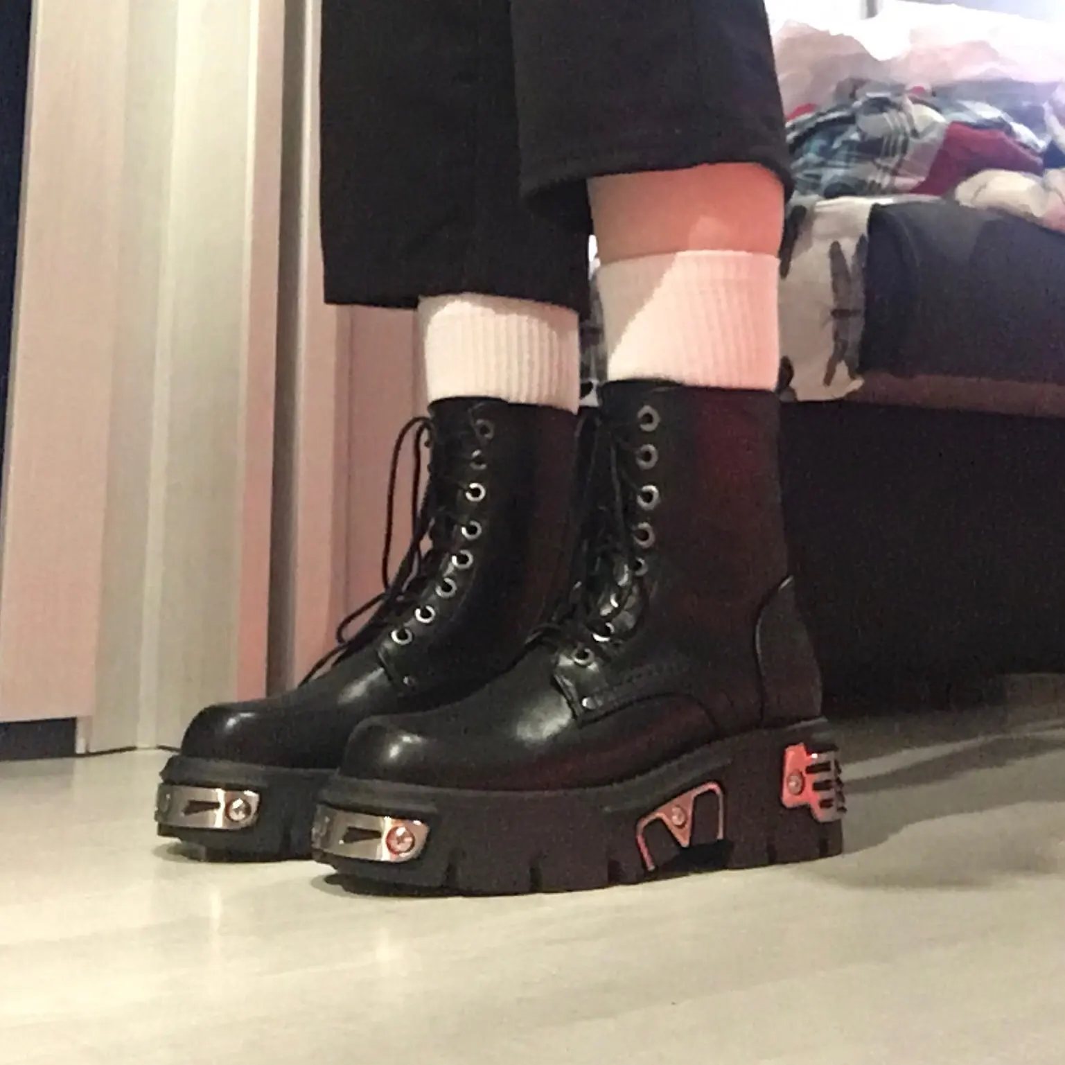 Женские ботильоны на платформе в стиле панк, черные мотоциклетные ботинки, массивная обувь с металлическим декором, 2021