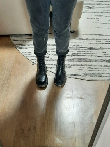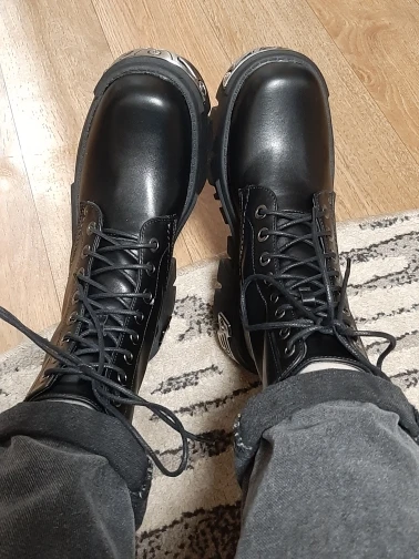 Ботинки очень классные, пришли быстро, недели за 2, сначала заказала вельветовые (утеплённые внутри как я поняла), но их не оказалось в наличии и продавец предложил поменять на обычные. Размерная сетка соответствует, на стопу 24.5 заказала 39, сели отлично, не в притык, так что хватить места надеть с тёплыми носками. Планирую носить их зимой, не знаю выдержат ли сырость и снег, но подошва хорошая, надеюсь железные вставки не поржавеют от сырости со временем. Из минусов то что железные вставки все в царапинах, понимаю что никто приглядываться не будет, но все равно не красиво. Так же у них оооочень длинные шнурки, придётся обматывать ногу чтобы не болтались. Крч ставлю ботинкам 10/10, сделаны качественно.