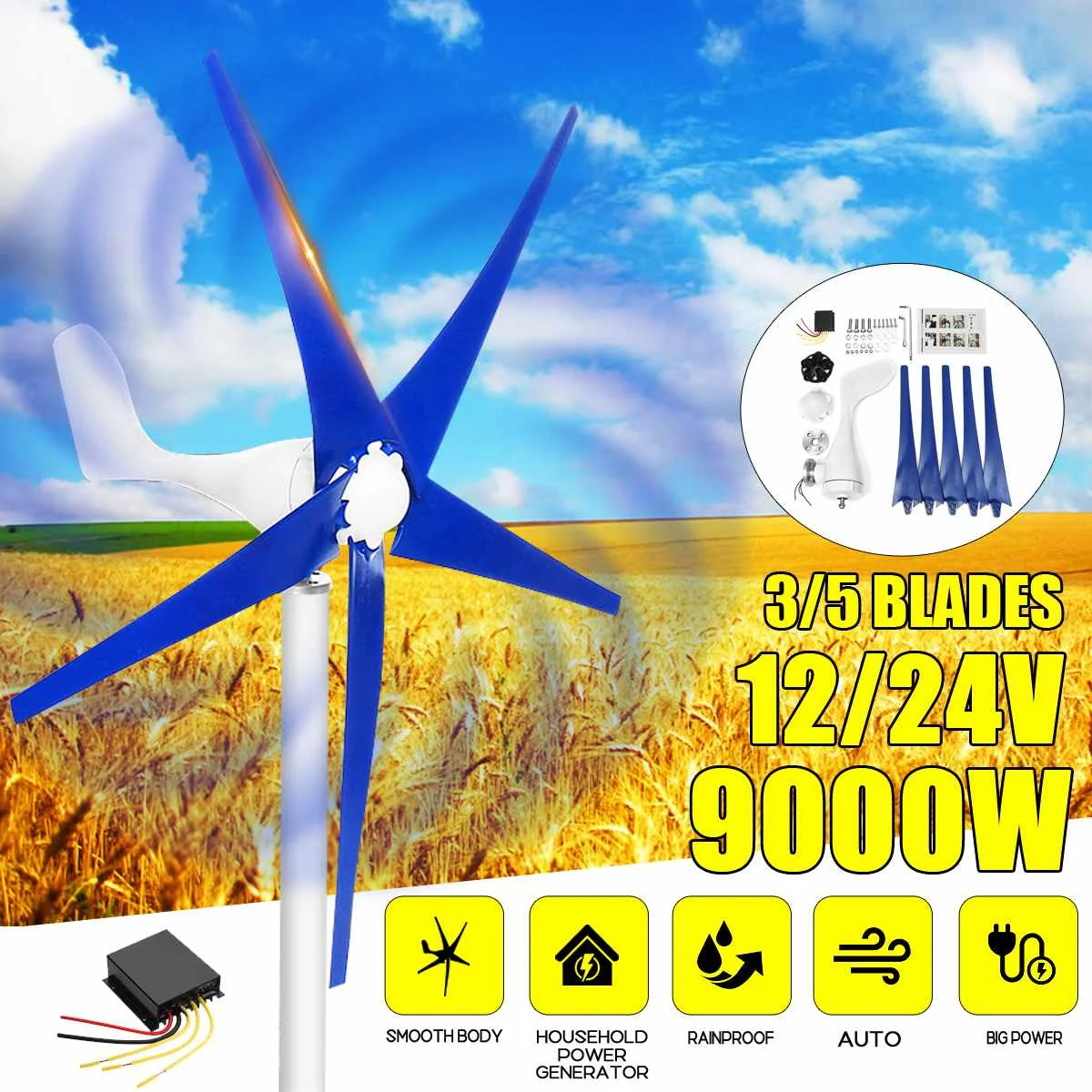 Ветряная Турбина 9000 Вт с 5 лезвиями 12 В 24 В, маленькая ветряная...