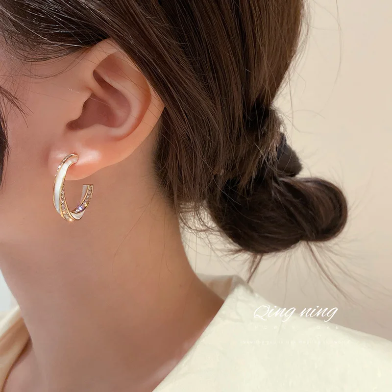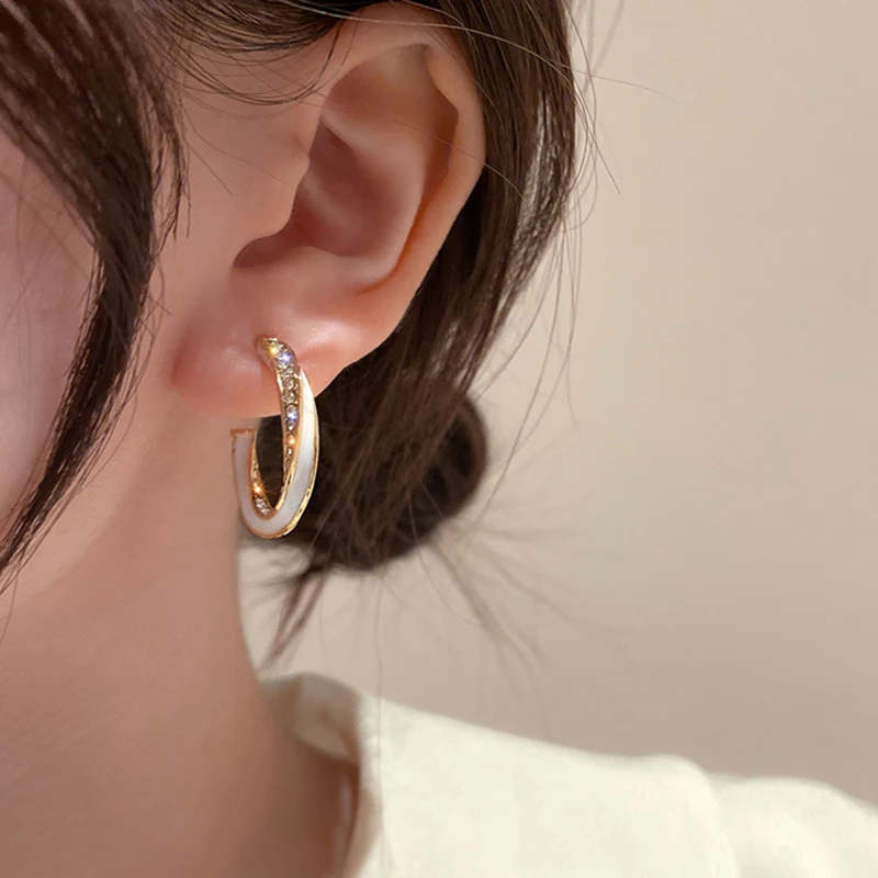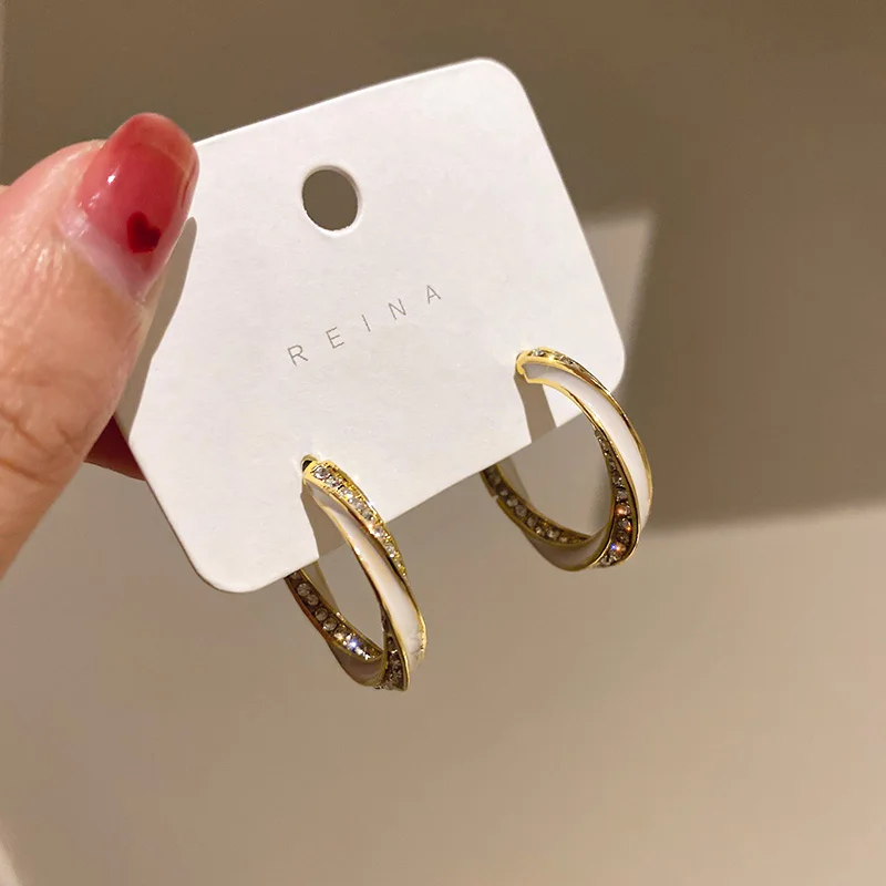 Серьги-кольца женские, круглые, золотистого цвета, стразы