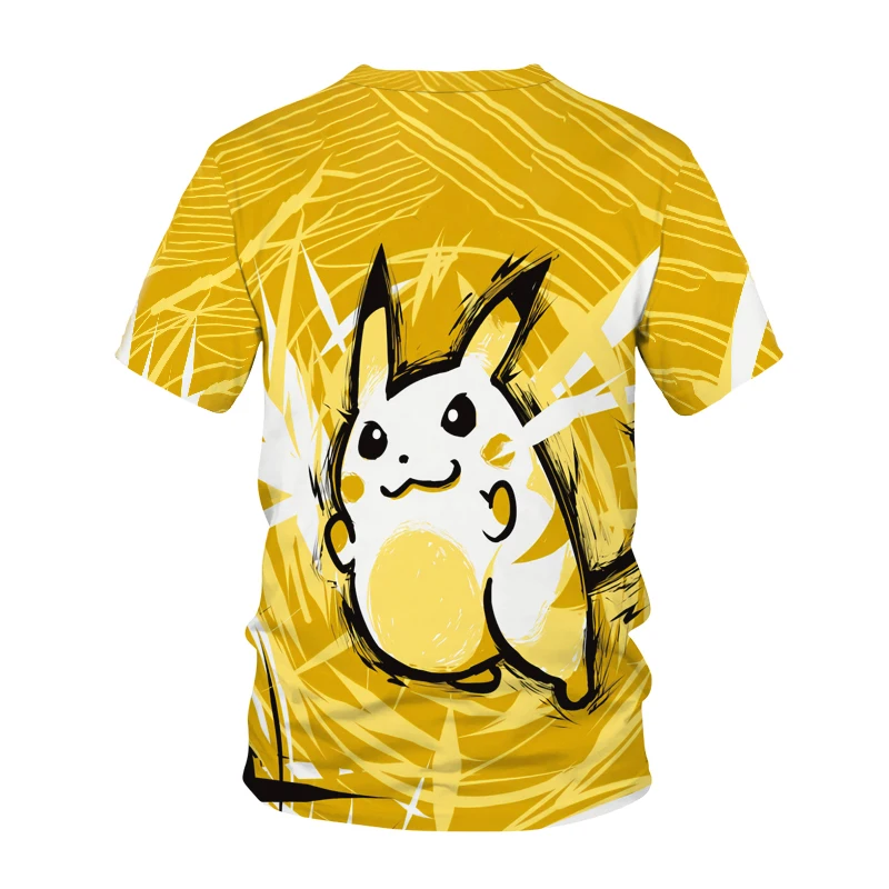 Летняя мужская футболка 2021, повседневный детский модный топ большого размера с 3D-принтом японского Аниме Пикачу